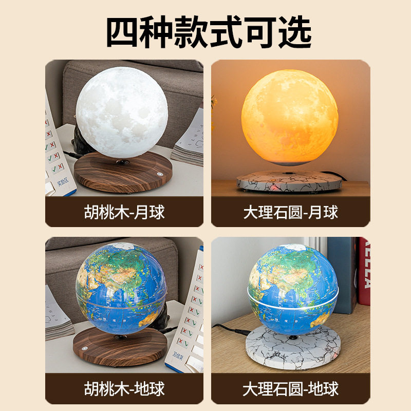 高科技磁悬浮自动升降月球地球仪小夜灯卧室床头台灯礼物高级感气