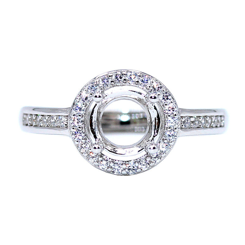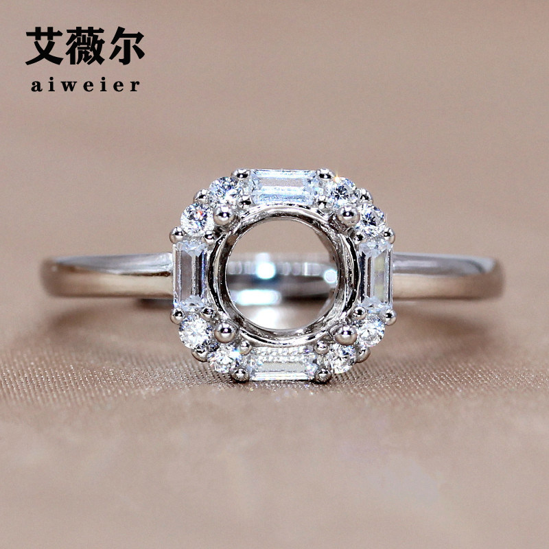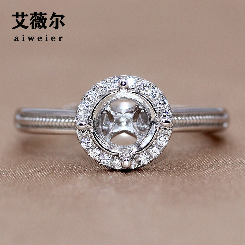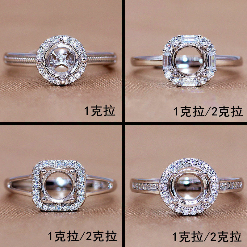 精工莫桑钻戒托925银镀18K金定制戒指圆形钻指环空托1克拉2克拉