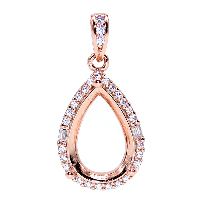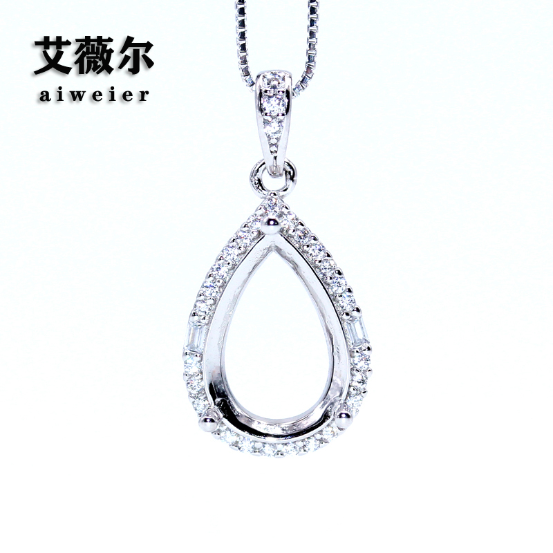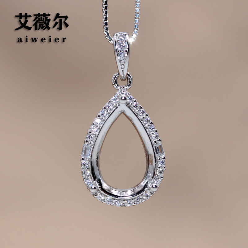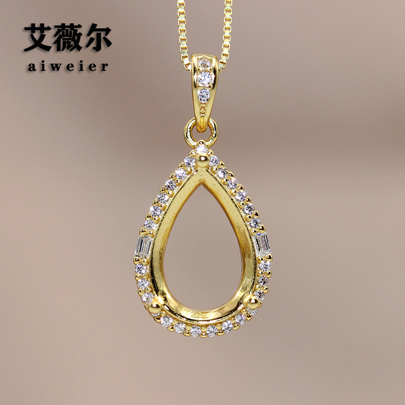 新款S925纯银吊坠空托水滴梨形空托精工女镶嵌18K玫瑰金4*6-8*12