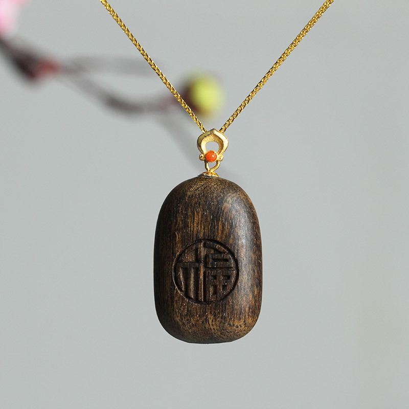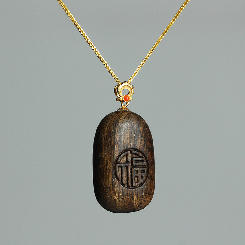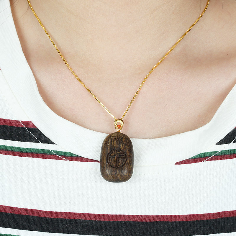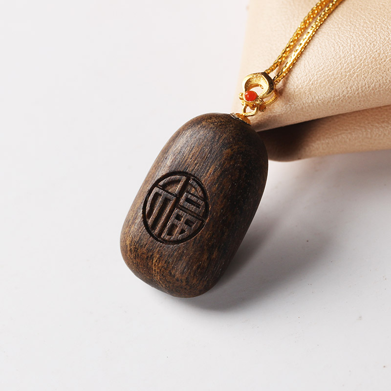 文莱沉香木质平安无事牌吊坠福字项链挂件女毛衣链饰品儿童礼物
