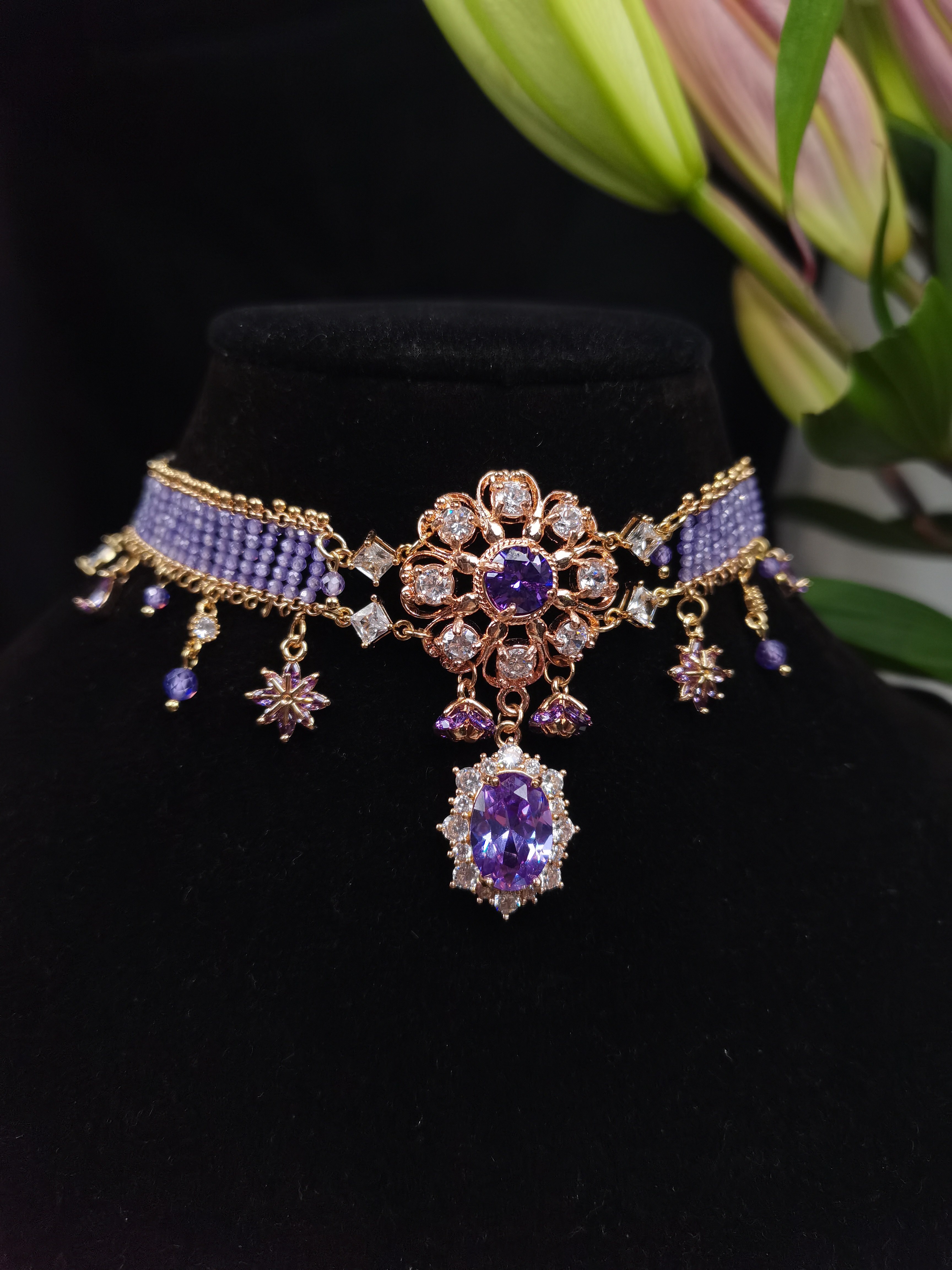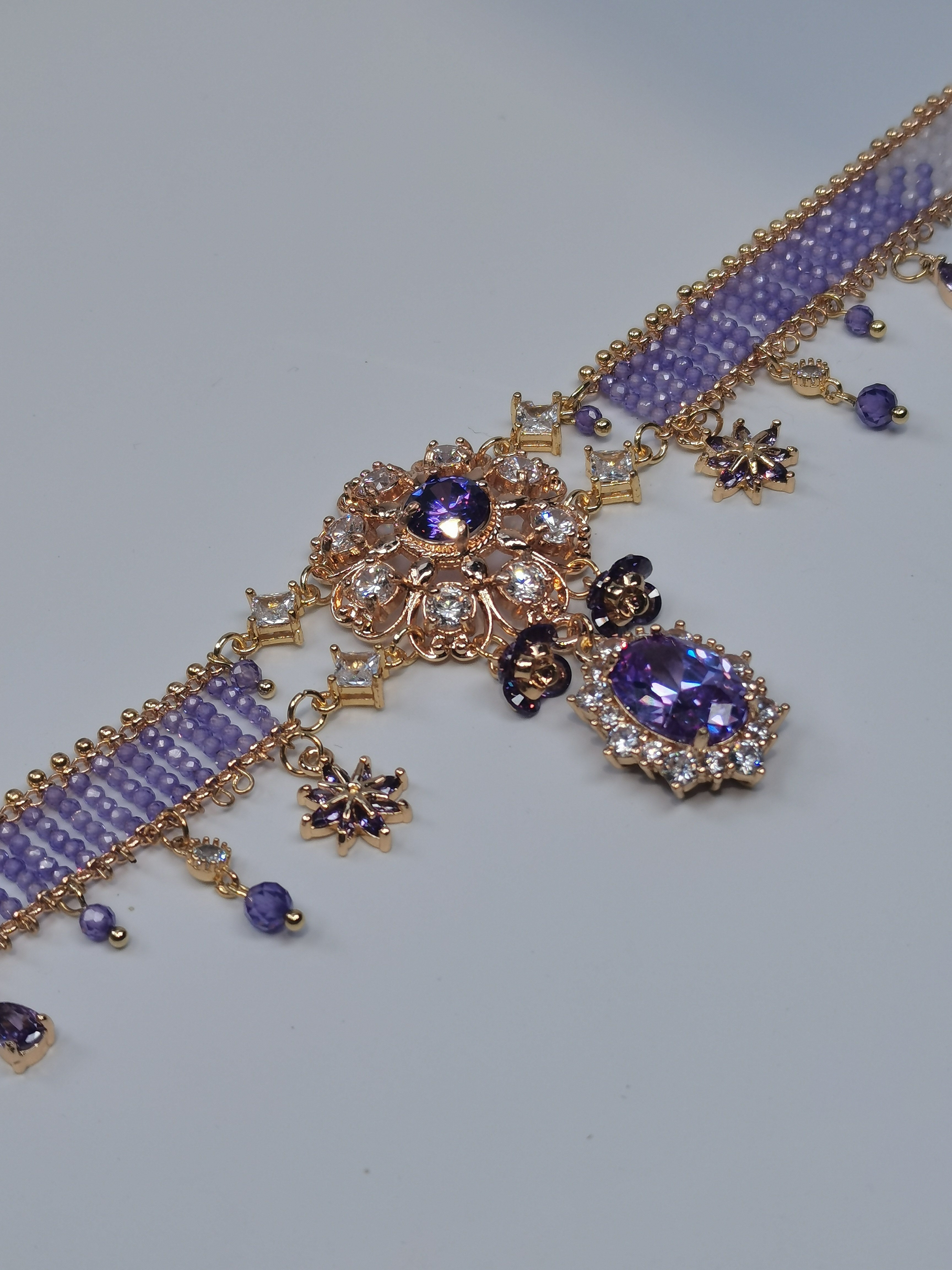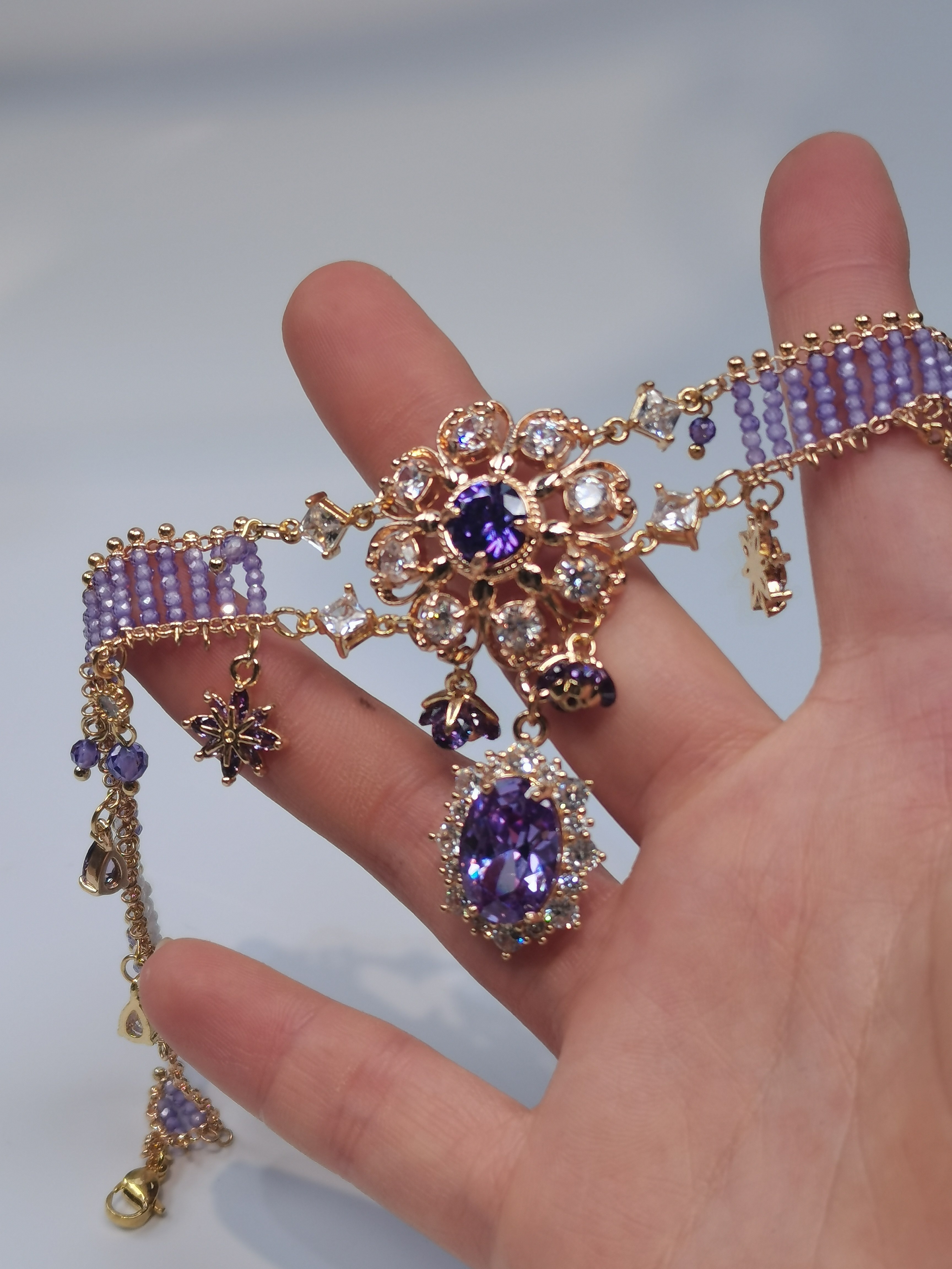 一梦星河/原创设计复古风紫色锆石流苏项链国风重工紫水晶项链