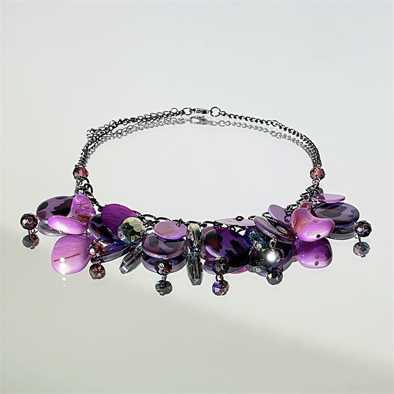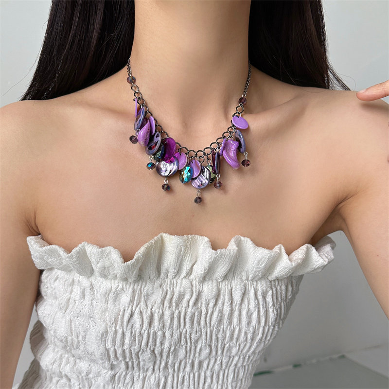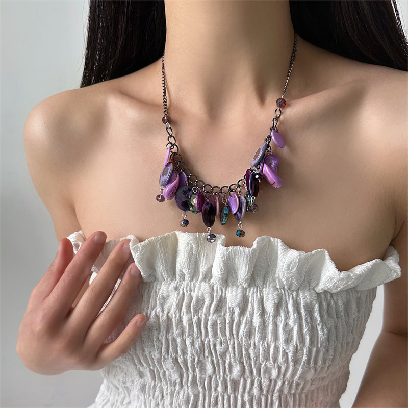 复古小众紫色亮片流苏项链轻奢个性ins设计感锁骨链时尚百搭