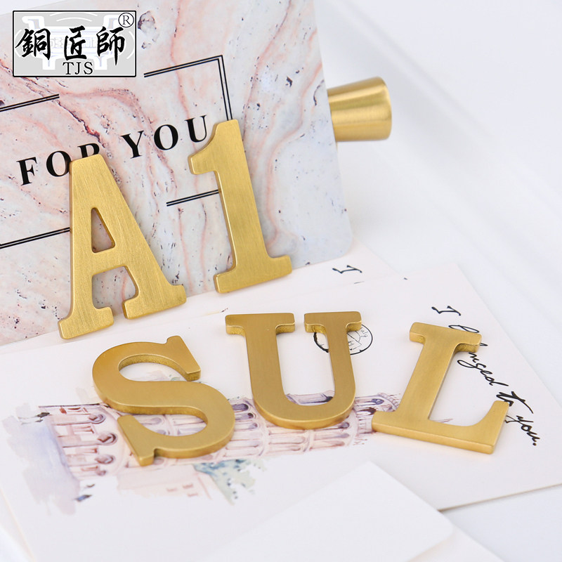 北欧黄铜数字门牌号码装饰墙壁轻奢创意摆件定制铜字母门贴免打孔