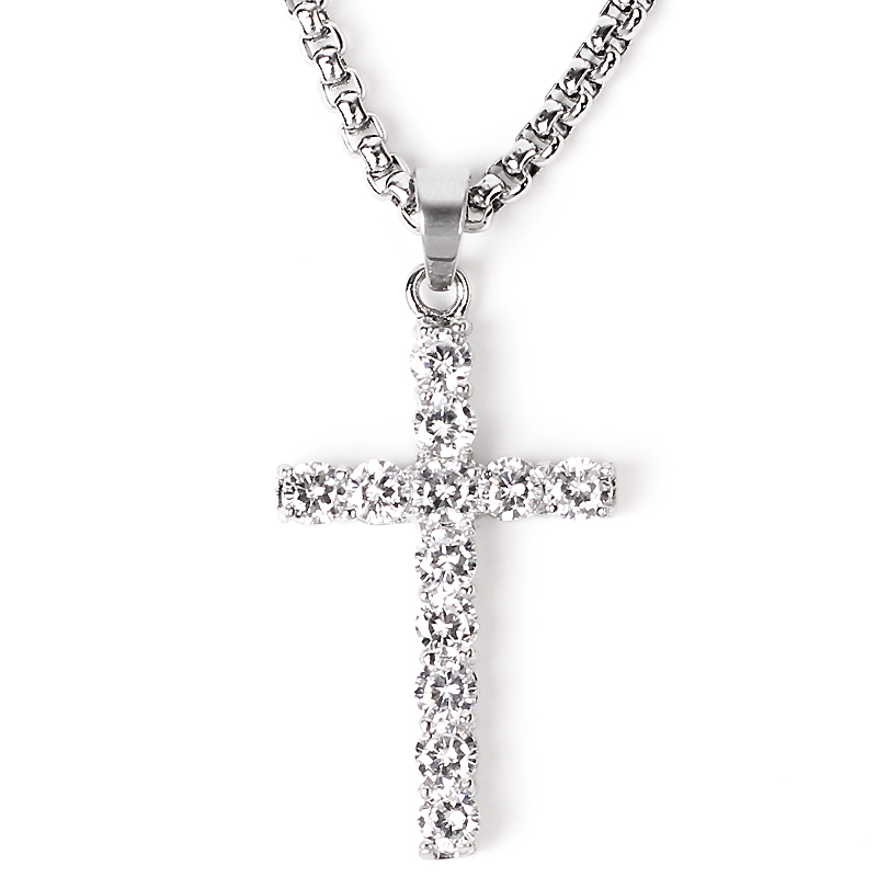 满钻十字架项链男女锁骨链ins马思唯锆石钛钢链高街说唱街头吊坠