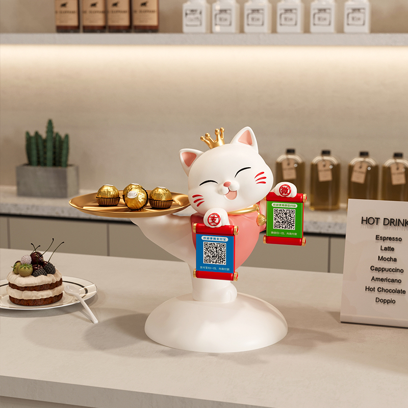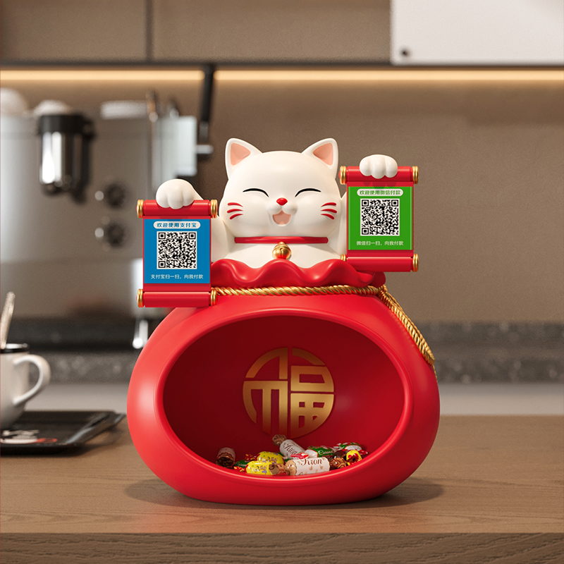 招财猫摆件新店开业礼物收银台前台二维码发财猫装饰店铺开张大吉