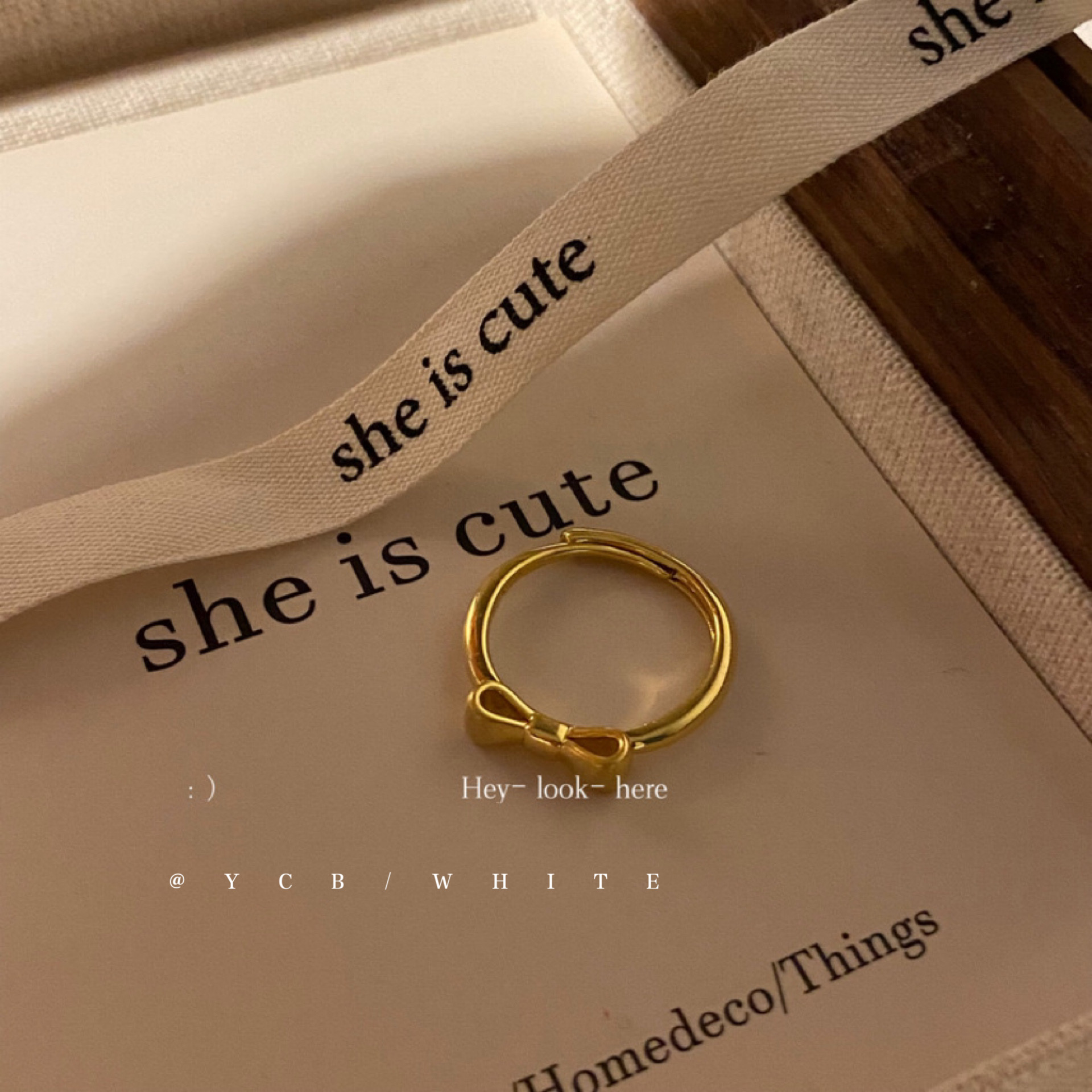 「在逃大小姐」轻奢高级感金色蝴蝶结戒指甜美可爱小众感设计指环