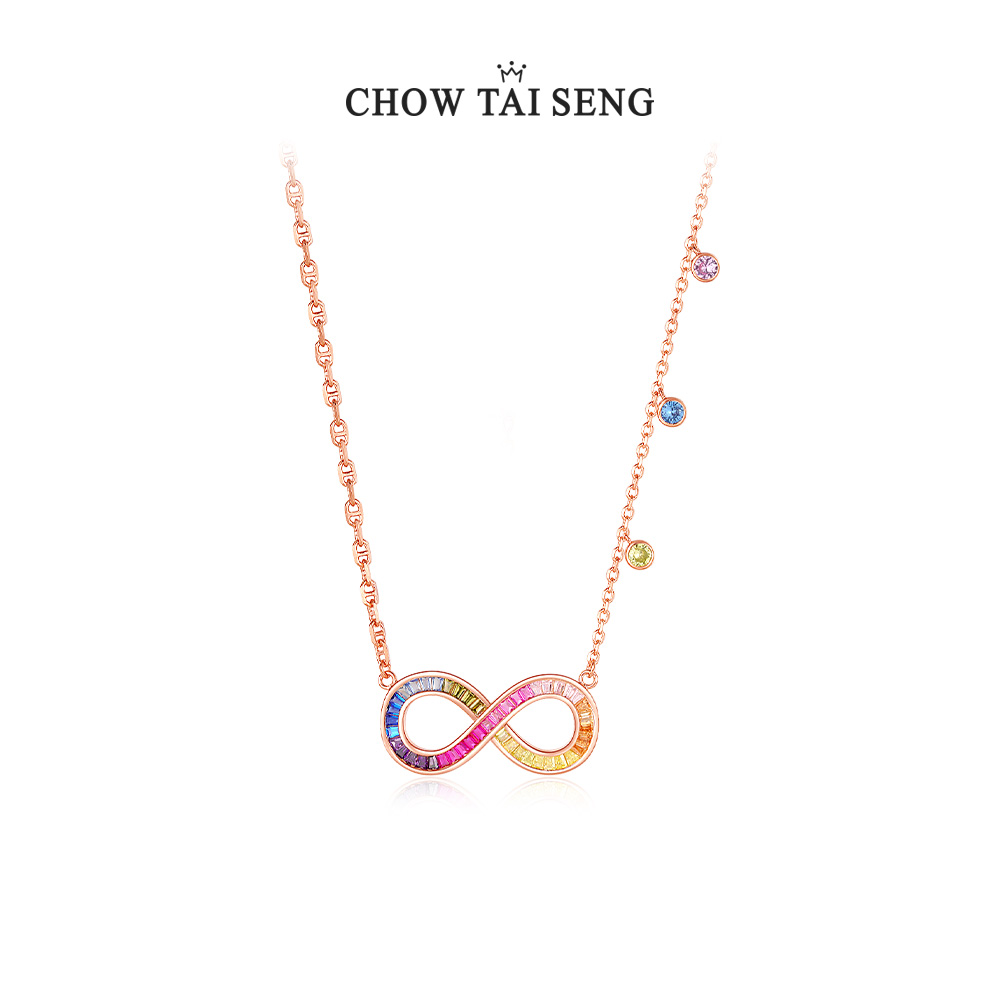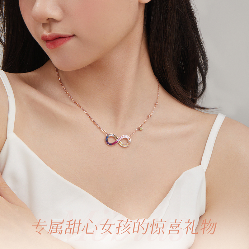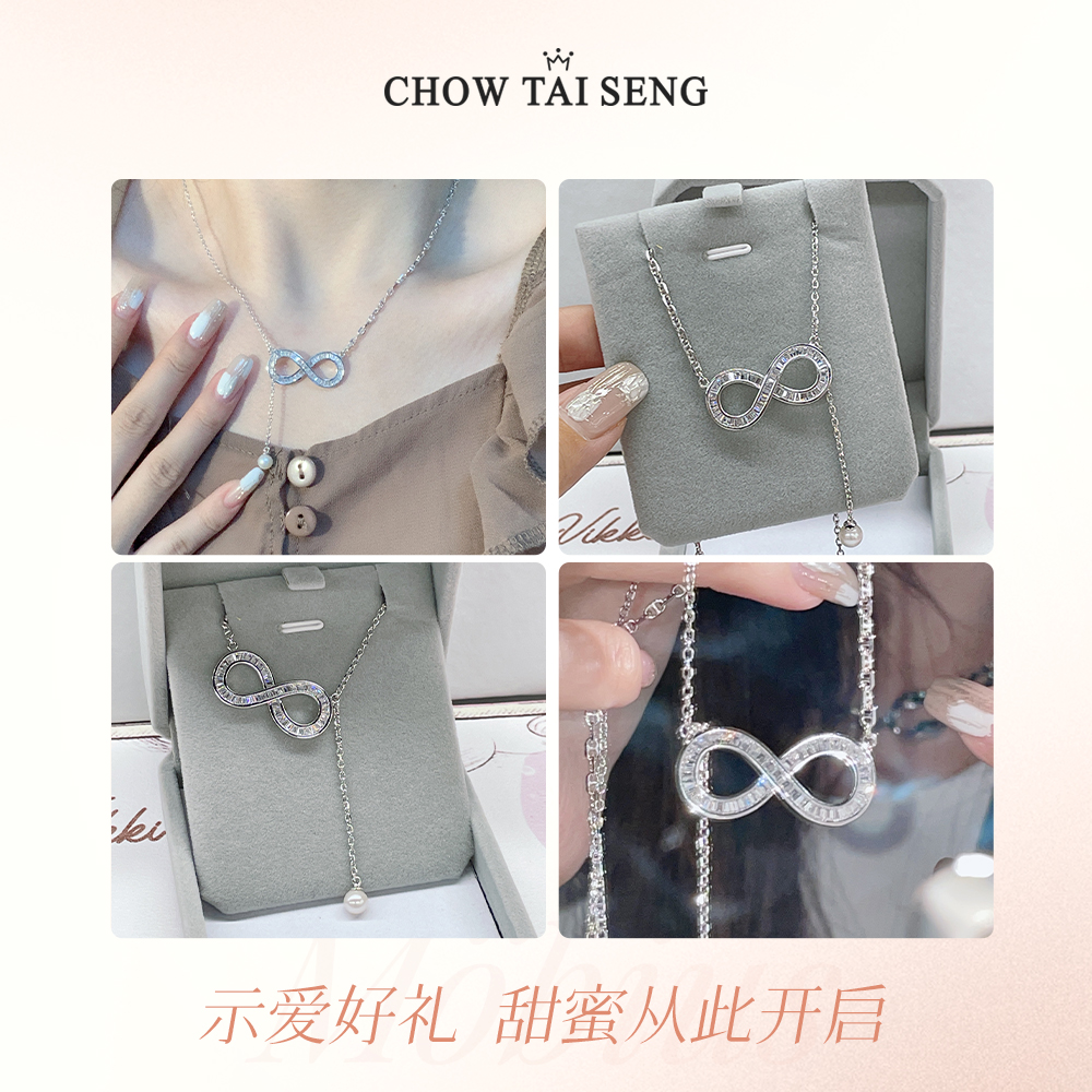 周大生莫比乌斯项链女多巴胺锁骨链纯银轻奢小众高级生日礼物饰品