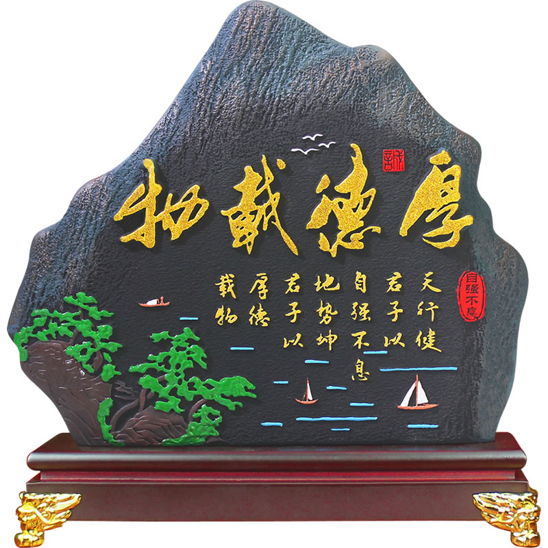 厚德载物办公室桌面励志摆件炭雕工艺品客厅N屏风博古架酒柜装饰
