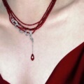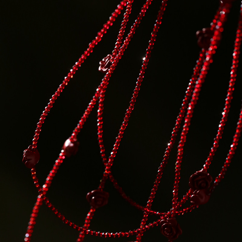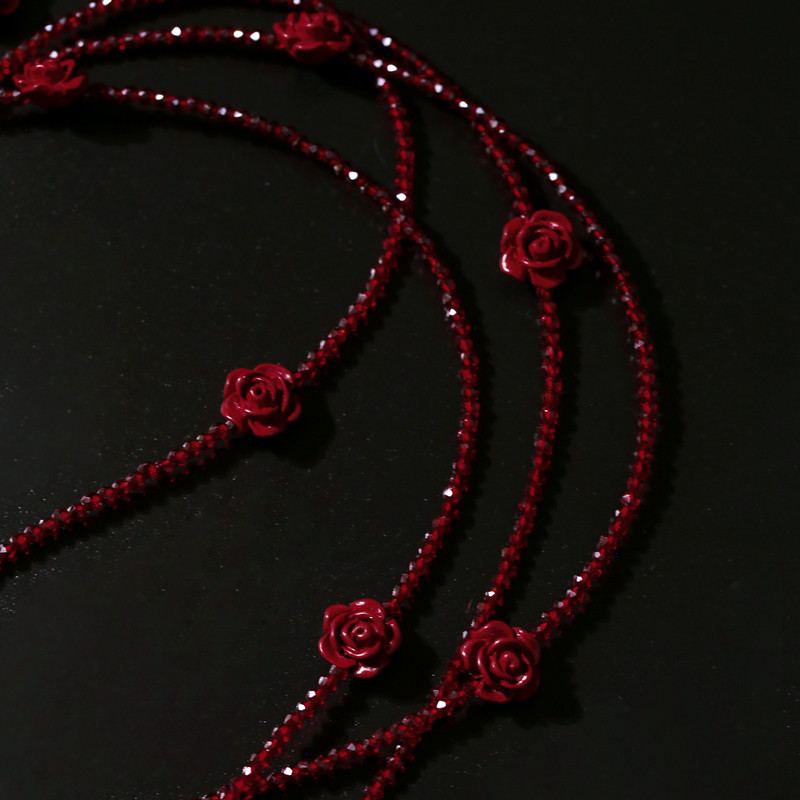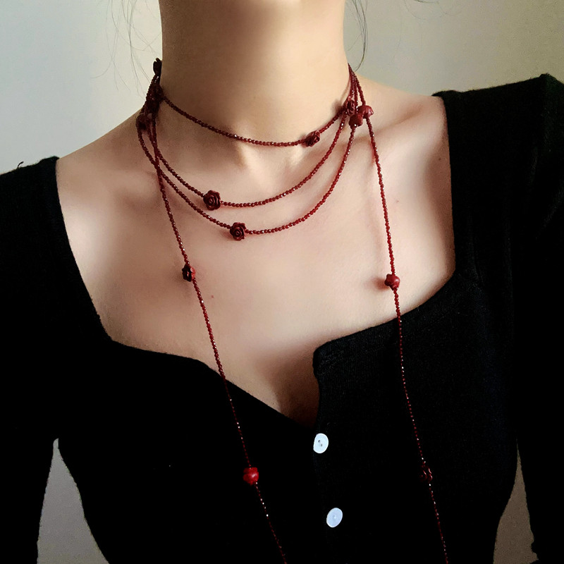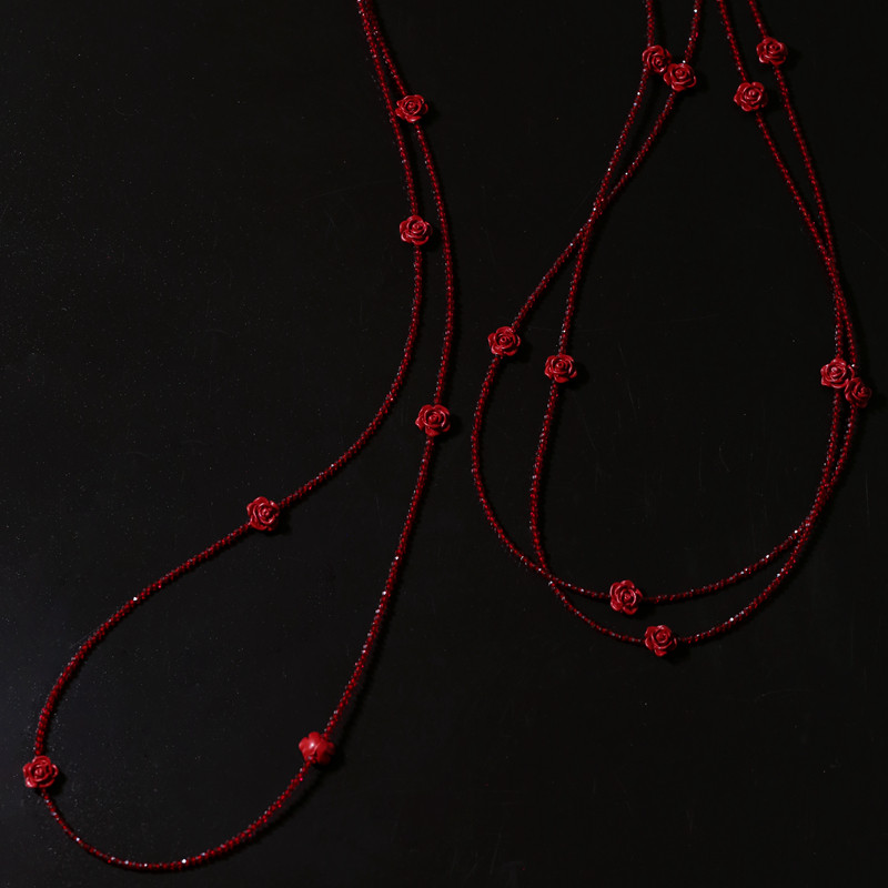 TU小众经典高级琉璃红玫瑰超长项链2026本命年红色叠戴挂脖毛衣链