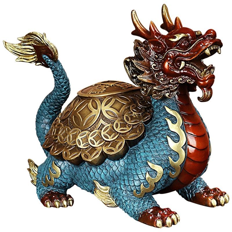 《财富龙龟》纯黄铜招财进宝金钱龙头龟摆件神兽客厅玄关装饰礼品