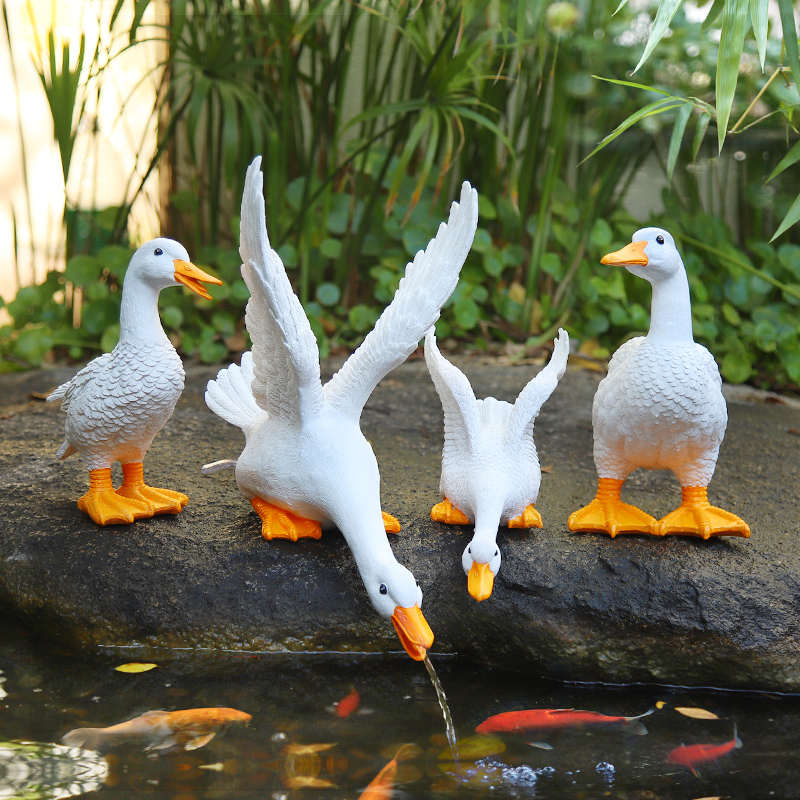 户外假山鱼池装饰鸭子摆件庭院花园水景动物喷泉流水鱼缸造景
