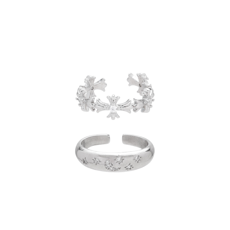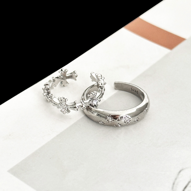 KANSAI银色锆石十字架戒指男女时尚个性冷淡风小众设计情侣手饰品