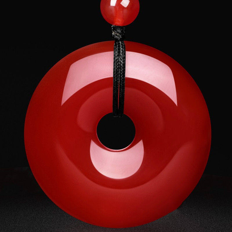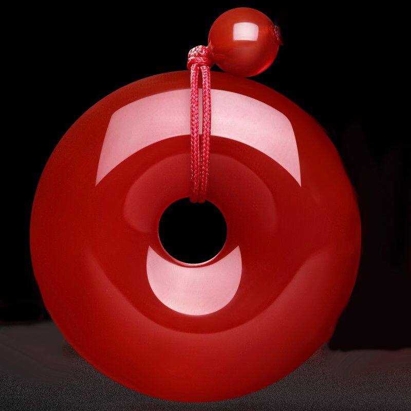 天然血玉纯天然玛瑙玉髓平安扣吊坠玉石项链生日大小饰品男女一级