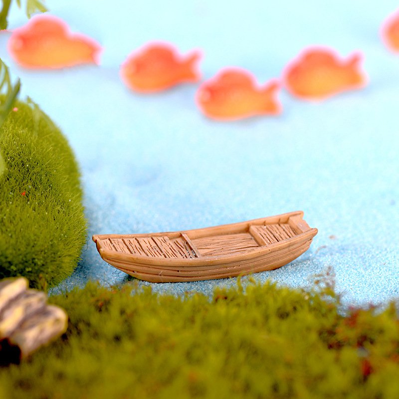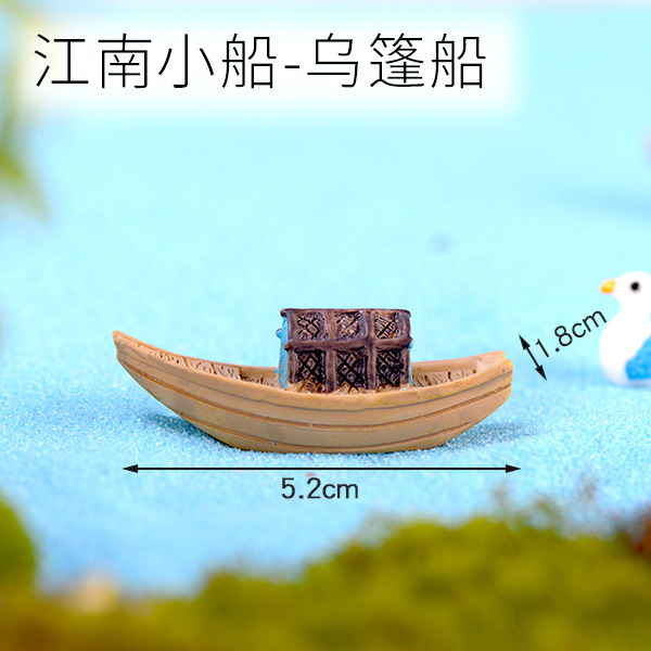 复古怀旧风微景观小舟渔船树脂冲锋舟小摆件迷你仿真生态瓶装饰品