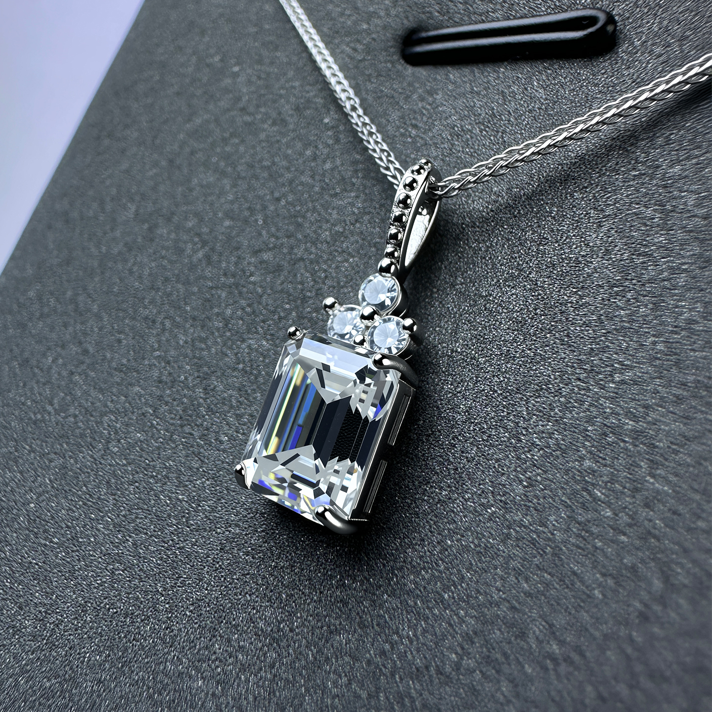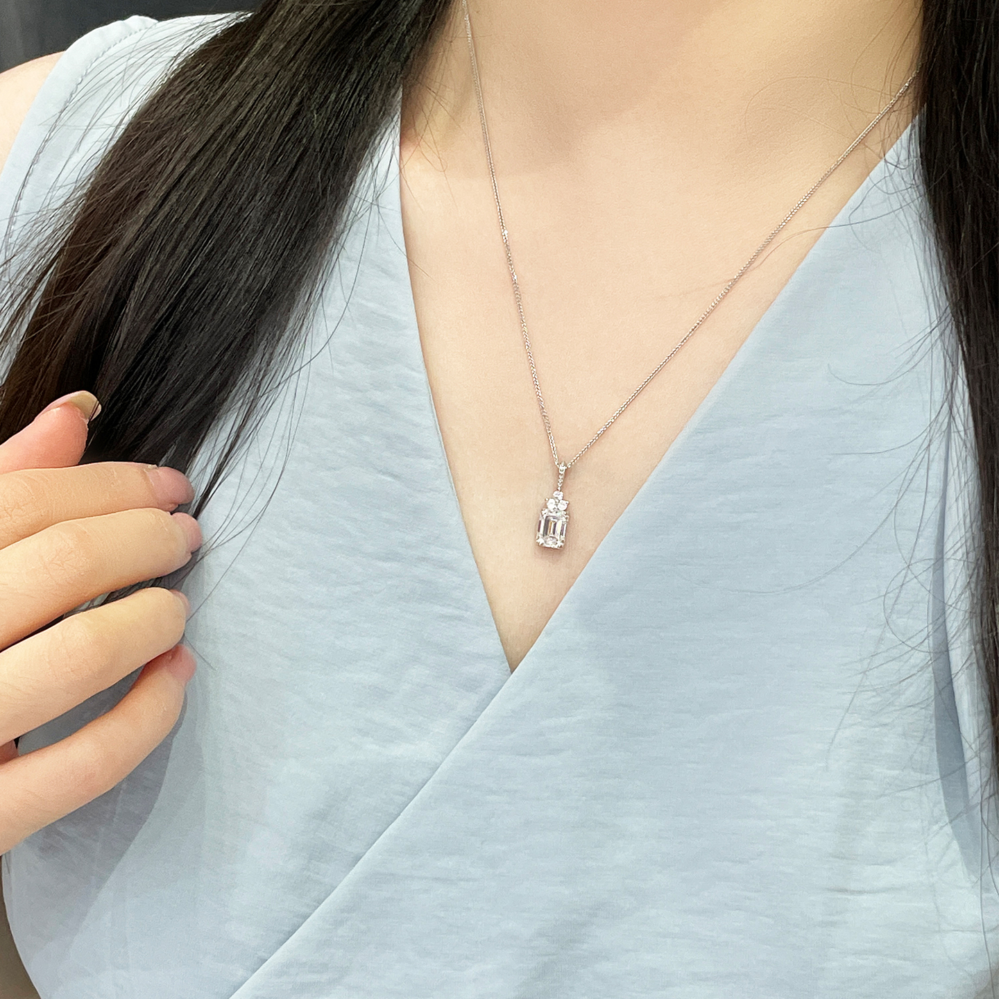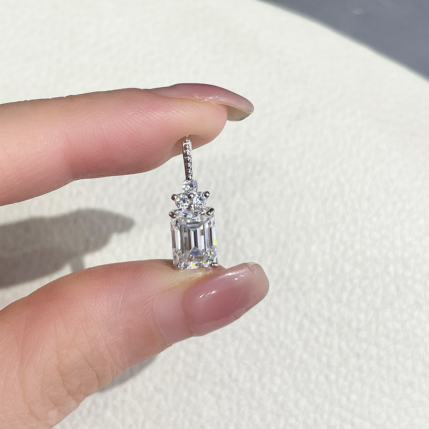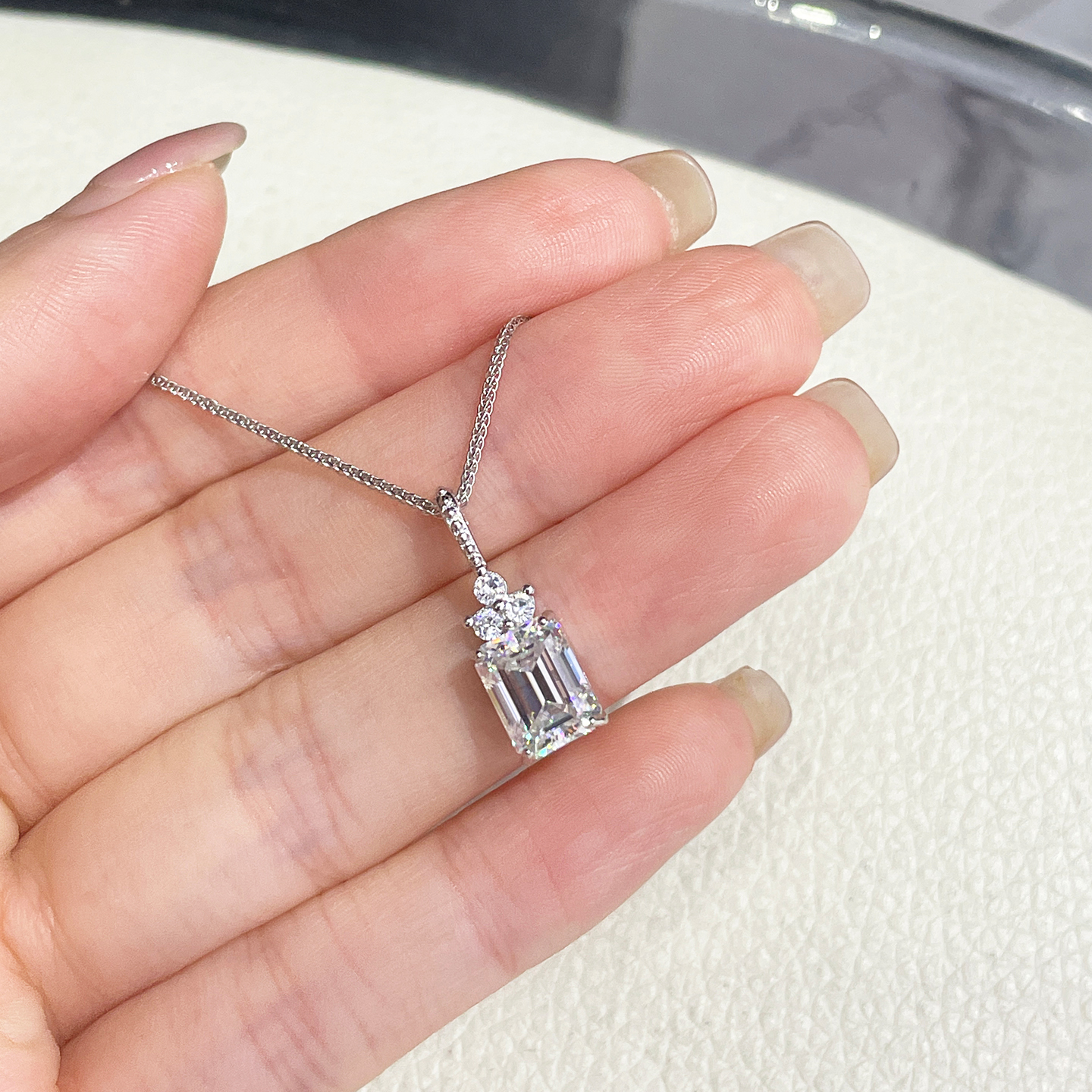 培育莫桑钻长方形吊坠女S925纯银项链镶嵌几何形白色宝石时尚精致
