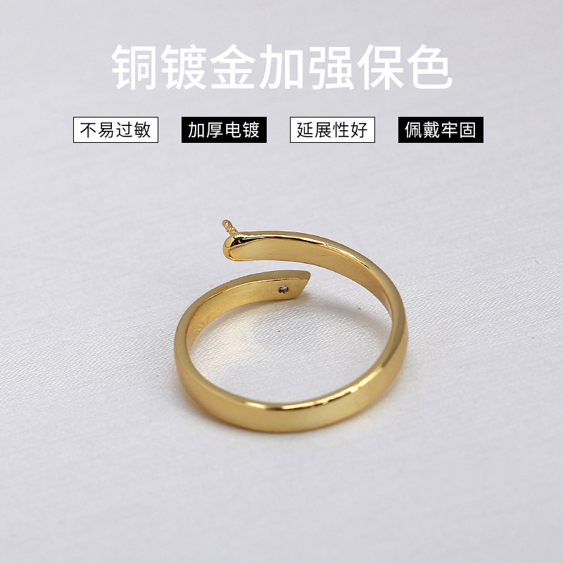 DIY珍珠配件新款铜镀金光面单锆精致气质戒指空托小众设计感