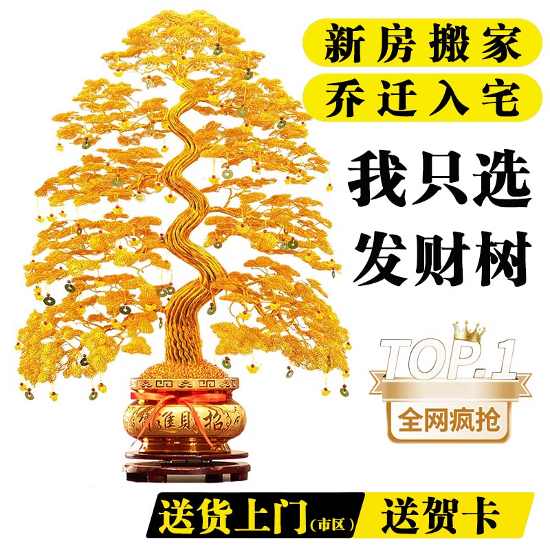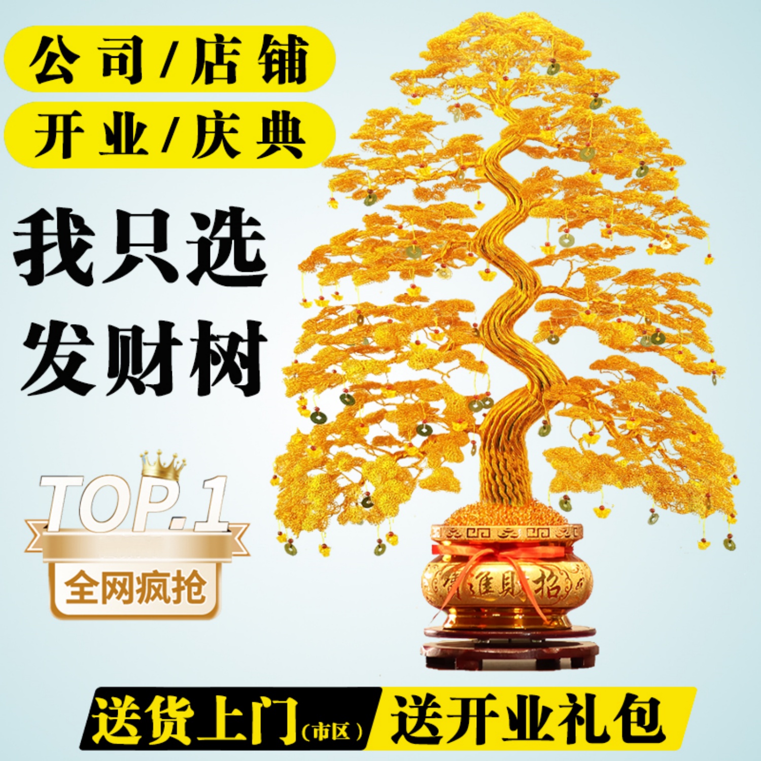 成品中式招财树发财树铜线铝线纯手工编织乔迁开业送礼摇钱树摆件