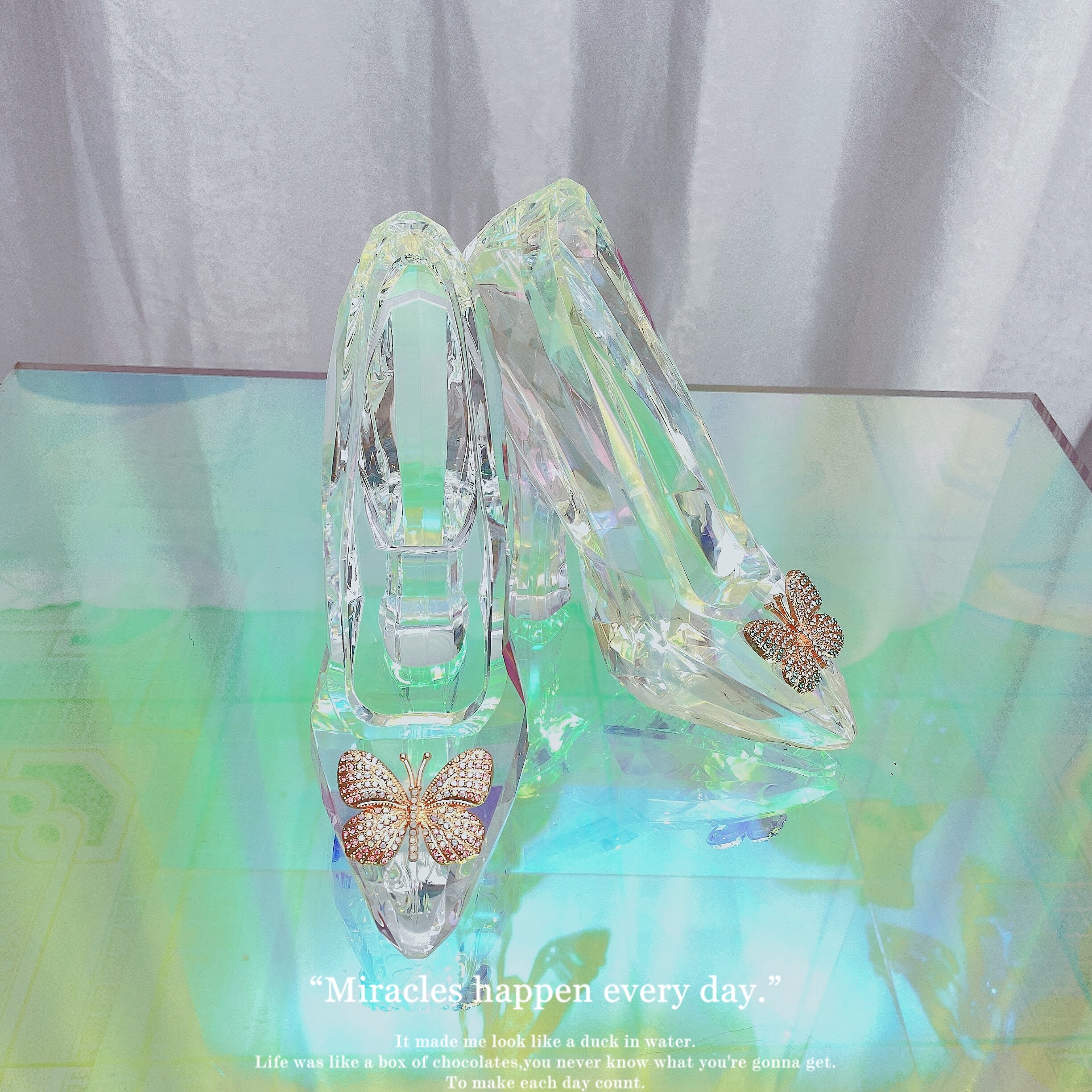 灰姑娘水晶鞋结婚摆件公主透明玻璃鞋情人节礼物送女友纪念日礼品