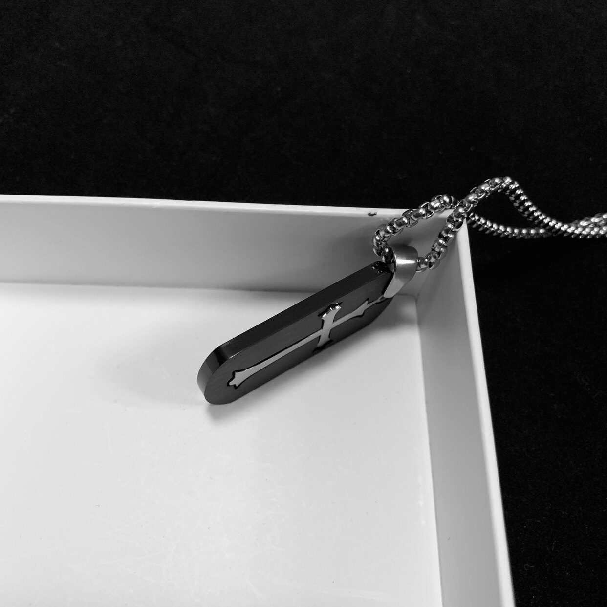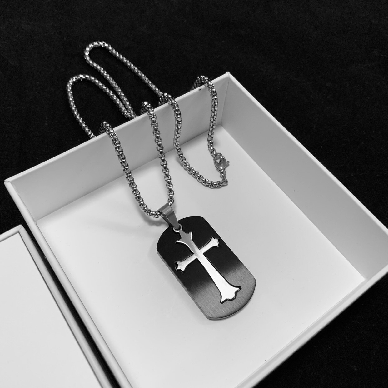 个性可拆分黑色军牌十字架吊坠钛钢男士项链男生饰品小众高级感潮