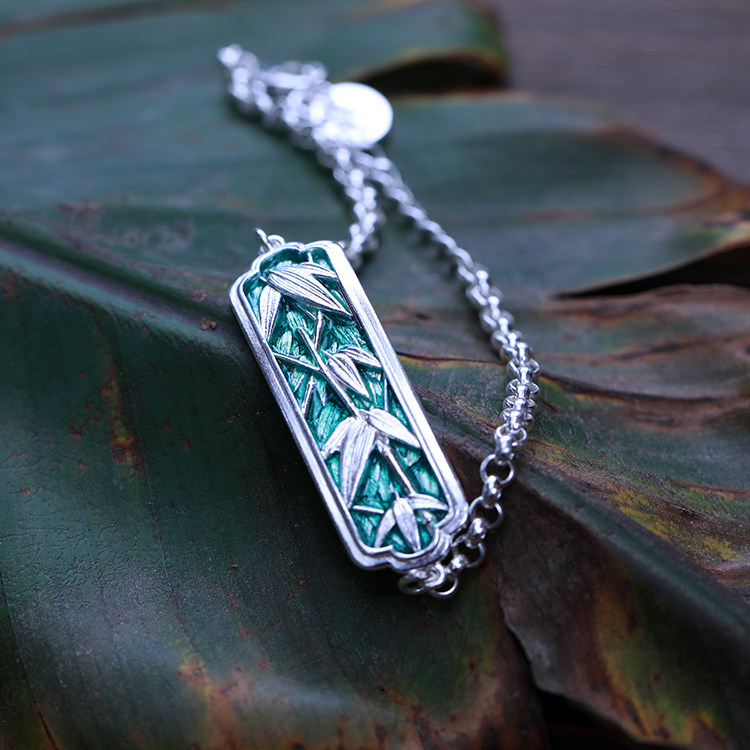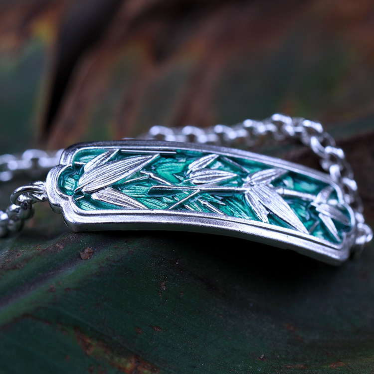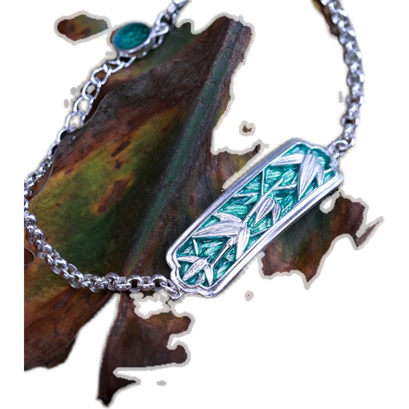身境饰物‖山石·竹木‖原创设计竹叶手链 纯银 高温珐琅 手牌