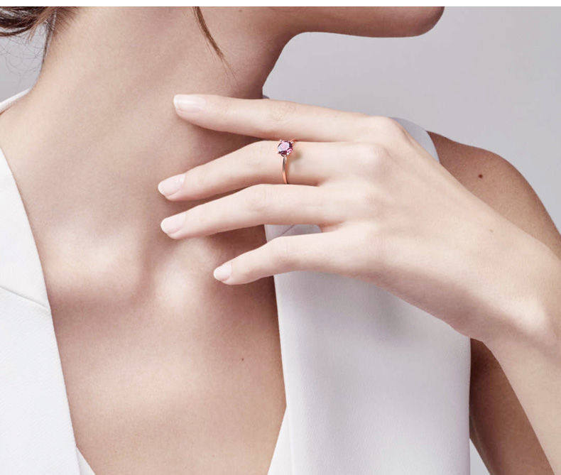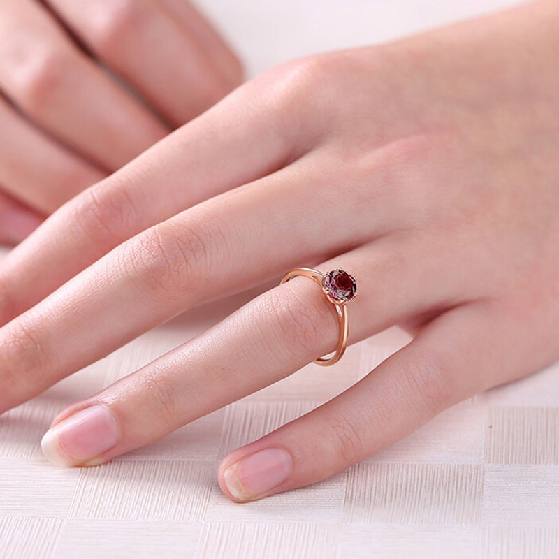 公主风玫瑰金石榴石戒指甜美圆形糖果六爪时尚简约奢华女款指环
