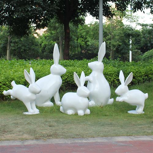 玻璃钢几何抽象切面卡通兔子雕塑户外园林景观小区地产装饰摆件大