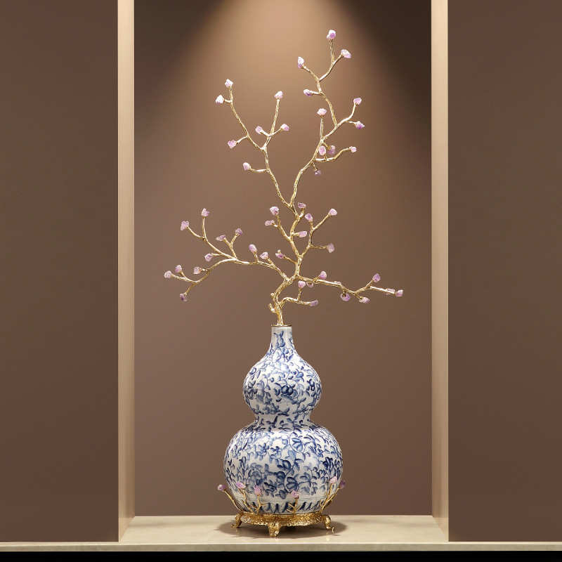 大号陶瓷黄铜水晶葫芦摆件客厅玄关壁龛现代高档乔迁开业送礼装饰