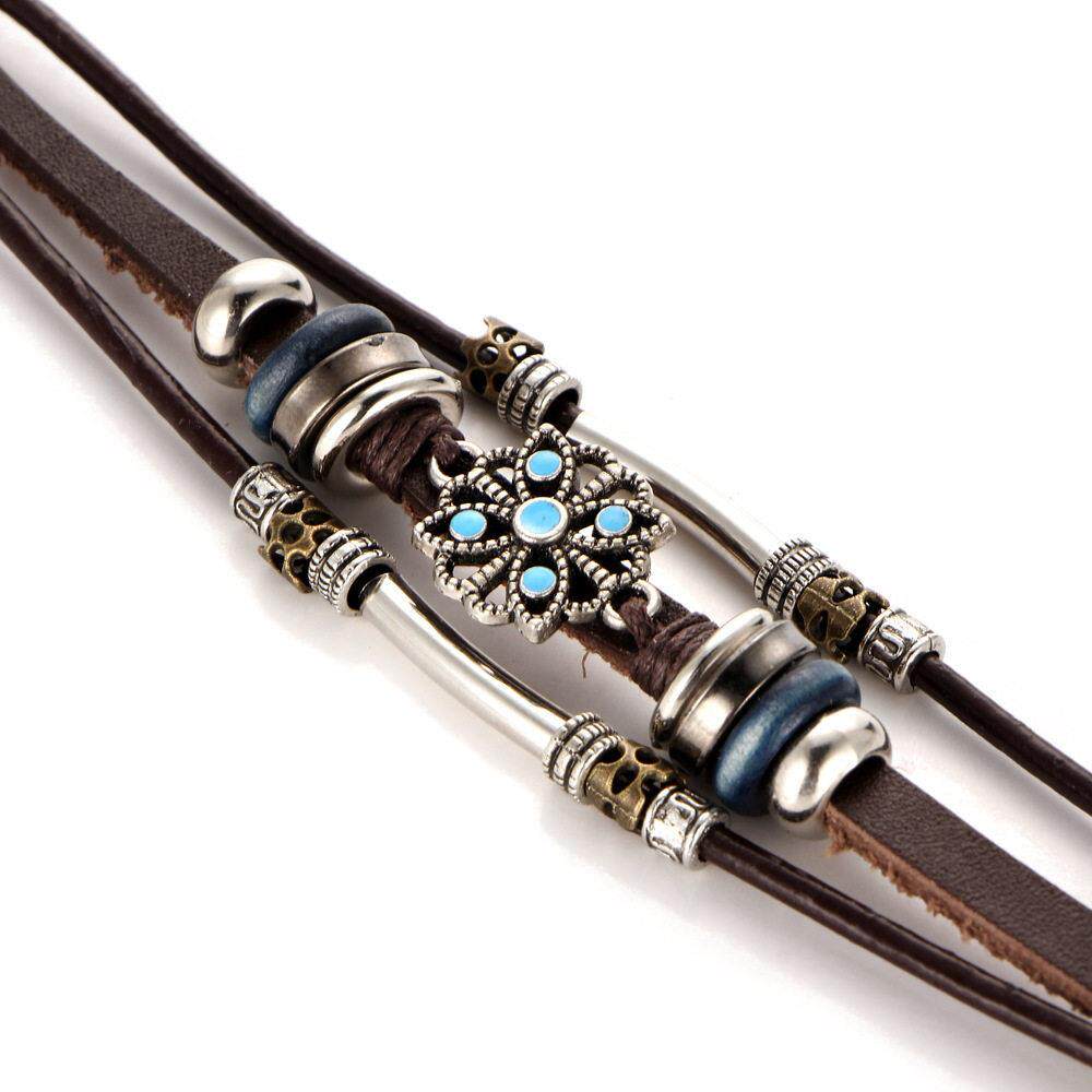 Vintage flower Turquoise mens Leather Bracelet绿松石皮手炼