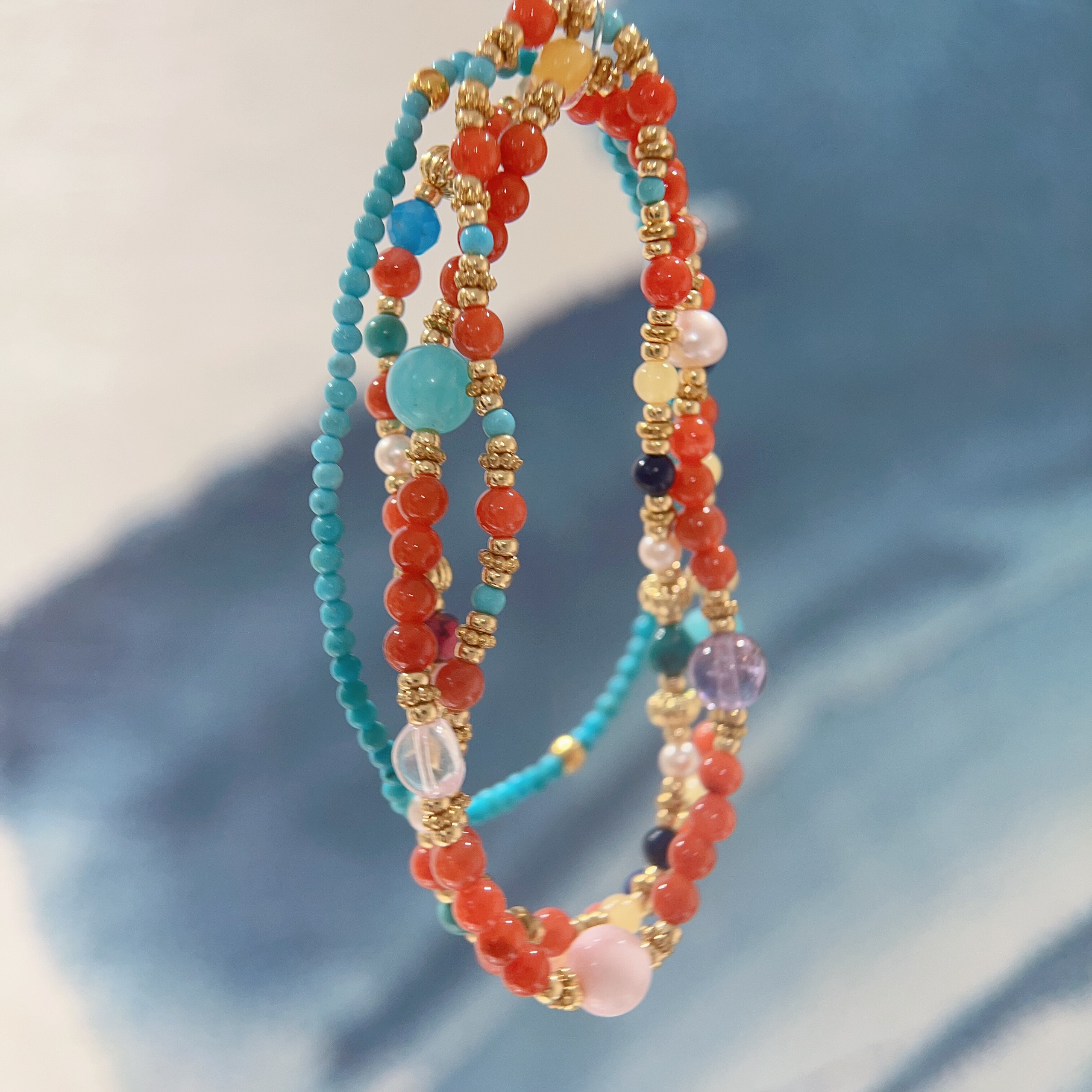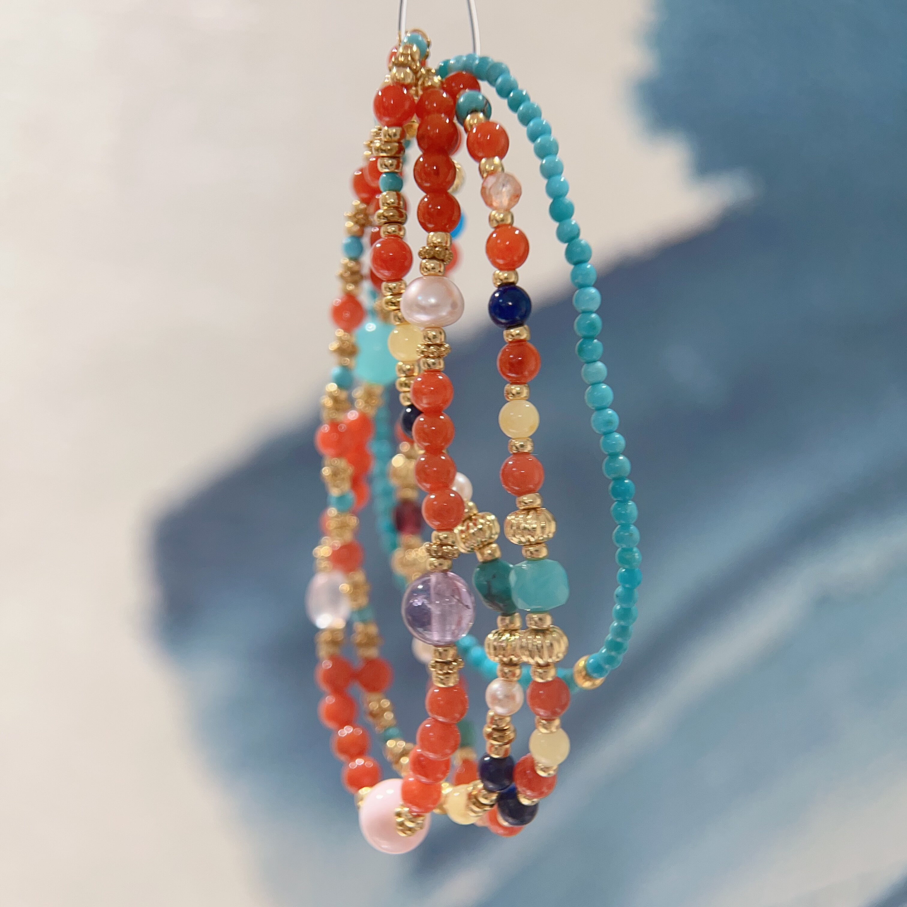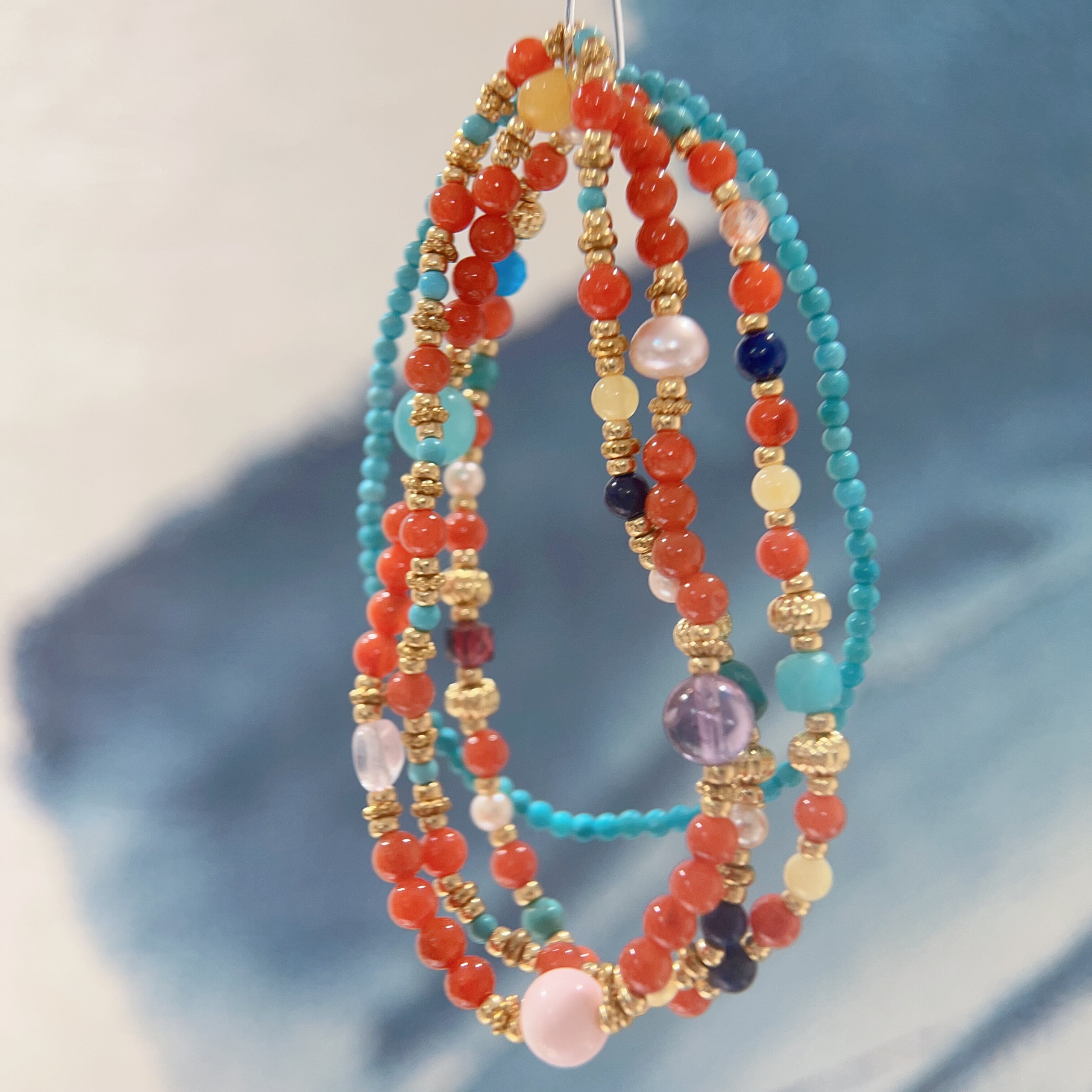 天然多宝南红单圈手串原创设计小众轻奢ins风法式手链叠戴秋冬