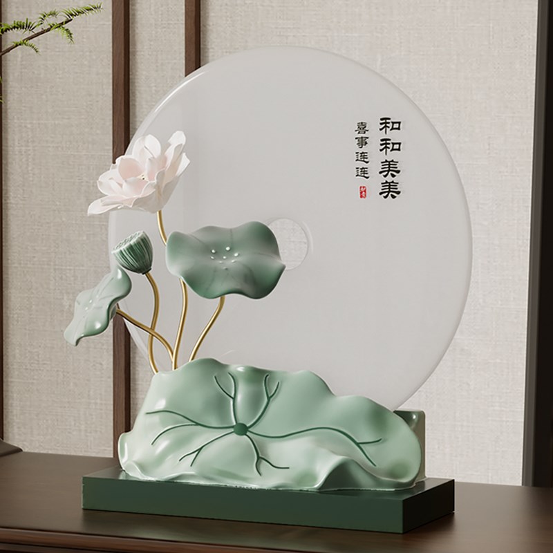 新中式荷花摆件家居软装饰客厅玄关茶室高级感工艺品新家乔迁礼物