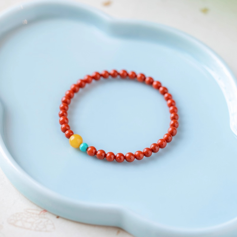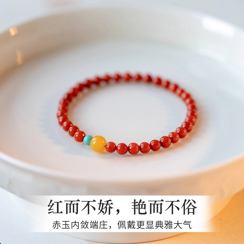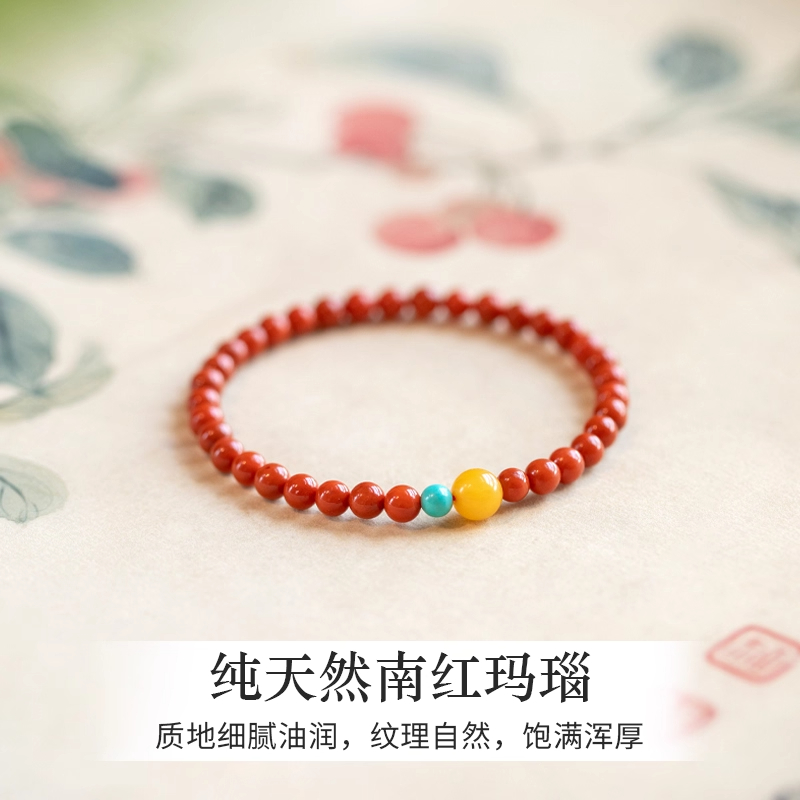真品南红手串天然红色玛瑙小米珠4mm手链蜜蜡转运珠新中式赤腾