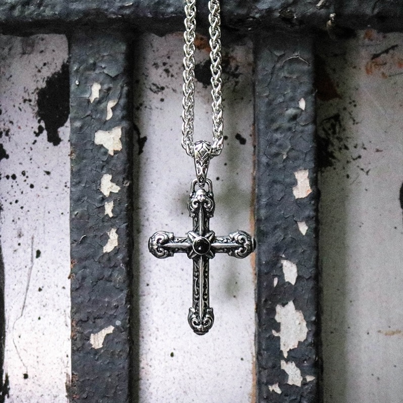 ROADLATIVE原创设计新品国潮街头潮流花纹复古十字架钛钢项链男