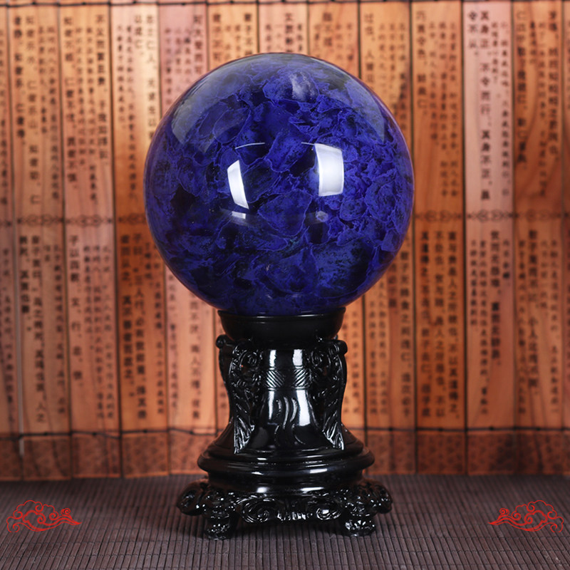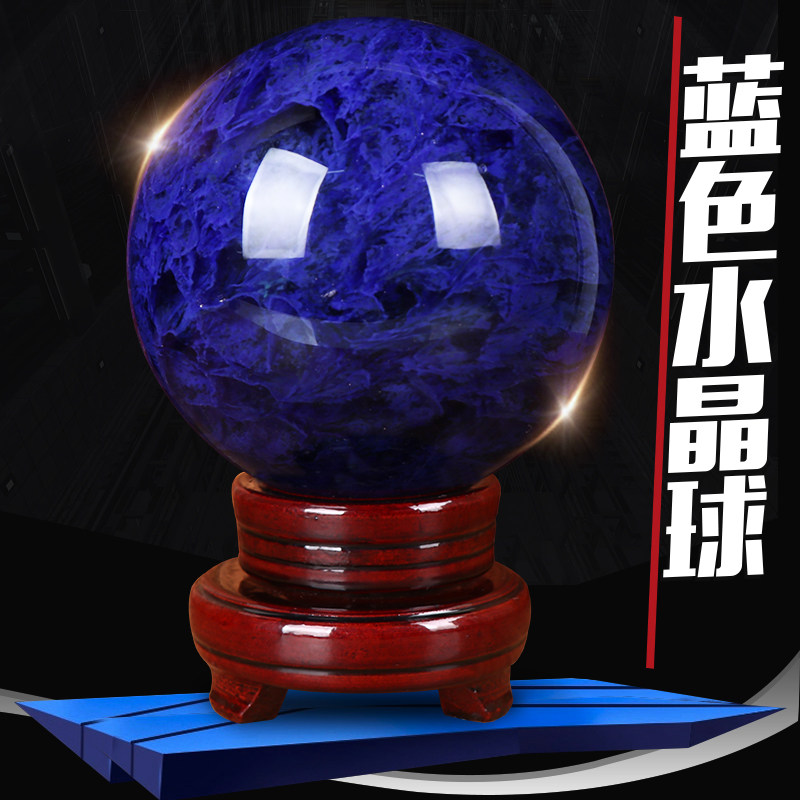 天然蓝色水晶球旋转摆件原石熔炼创意客厅办公室家居饰品开业礼品
