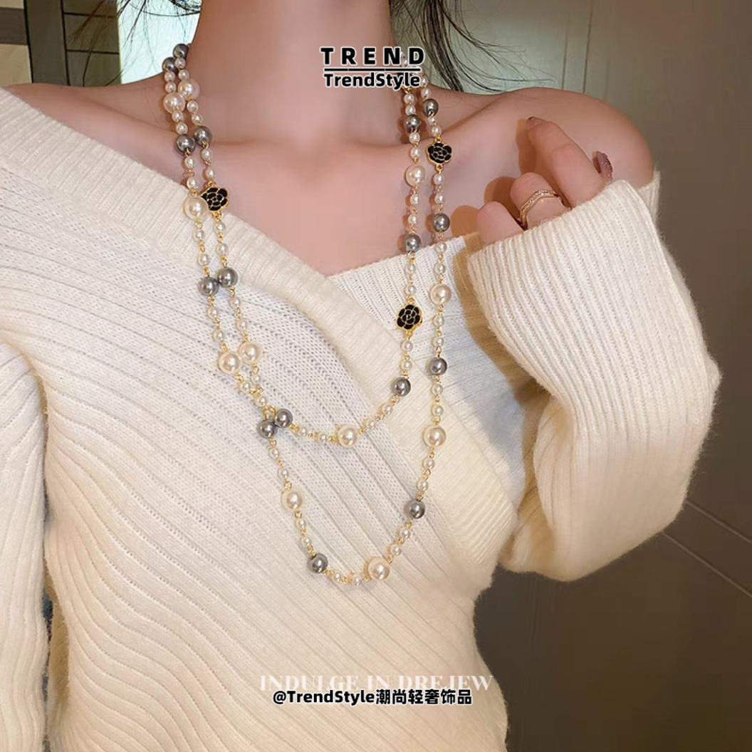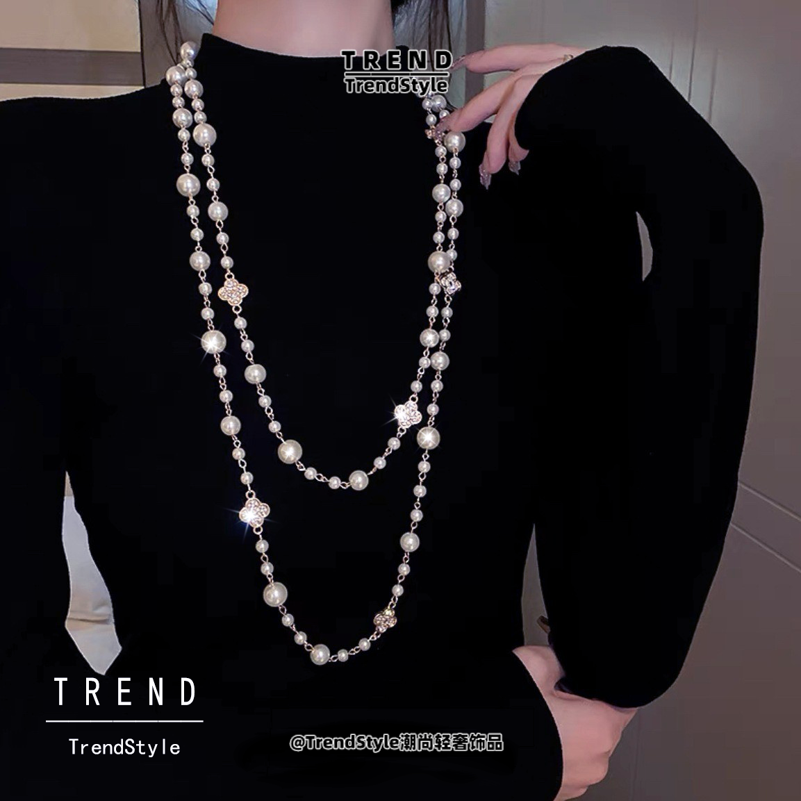 新中式国风配饰旗袍珍珠项链颈链长款叠戴轻奢高级感搭配毛衣女款