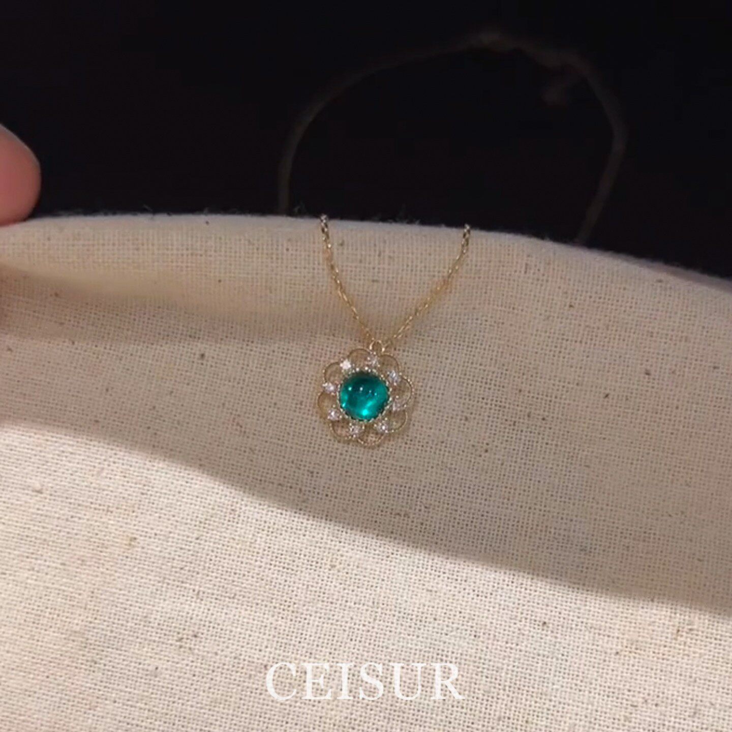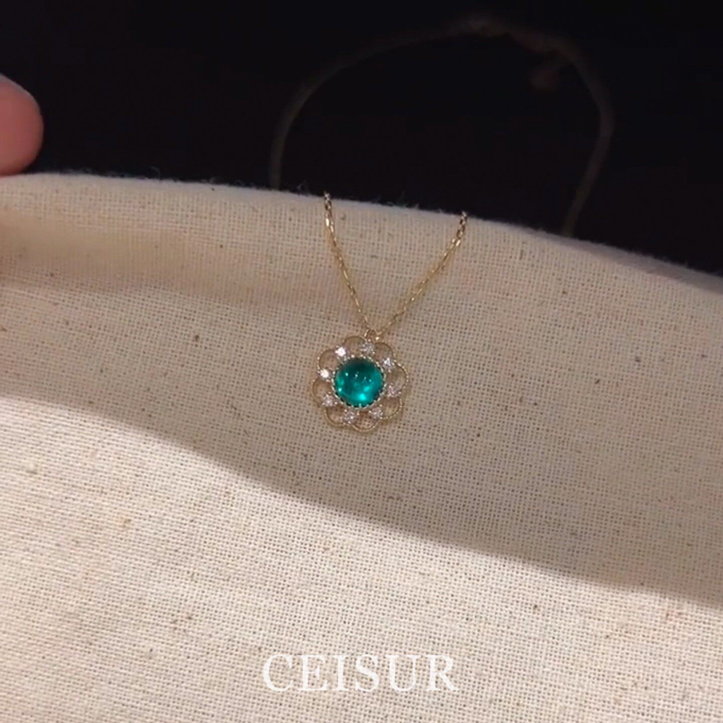 S925纯银绿色花盘镂空项链女款高级感轻奢小众2026新款爆款毛衣链