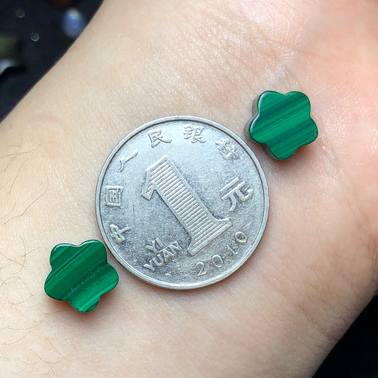 天然孔雀石小梅花裸石吊坠DIY编绳绕线镶嵌手链项链耳坠配件