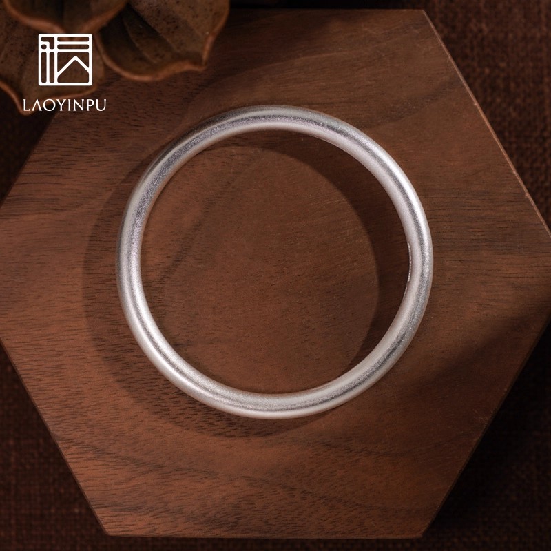 吴越老银铺足银9999银手镯古法纯银镯子素圈年轻款实心生日礼物