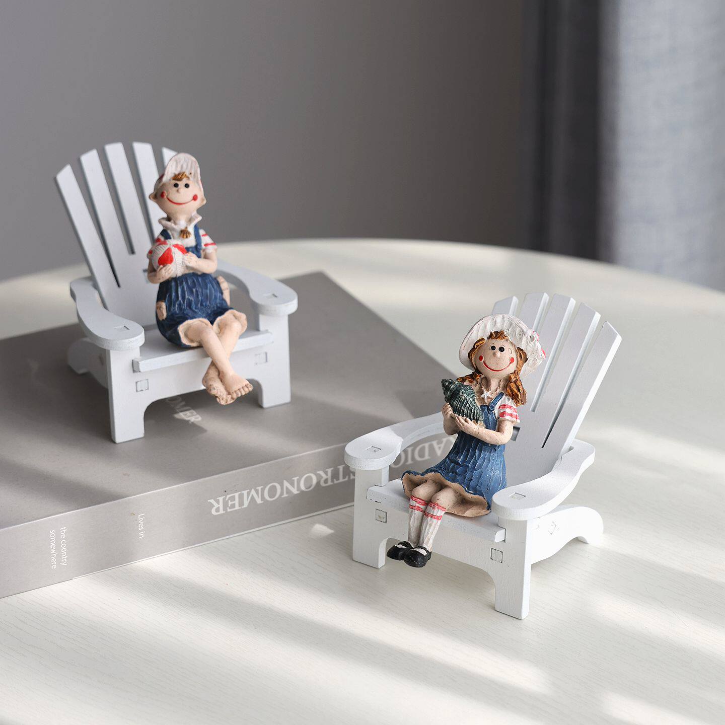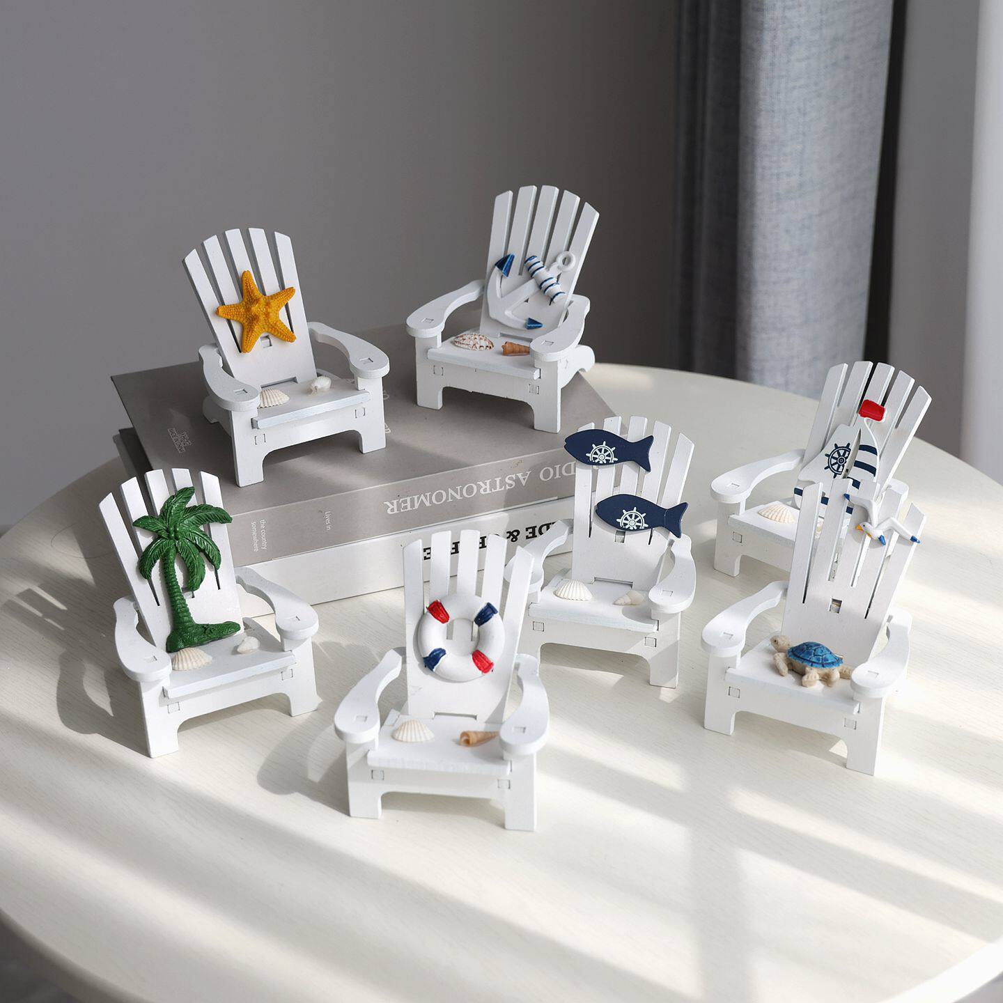 地中海风格木制迷你沙滩椅家居儿童房装饰摆件手机座创意饰品道具