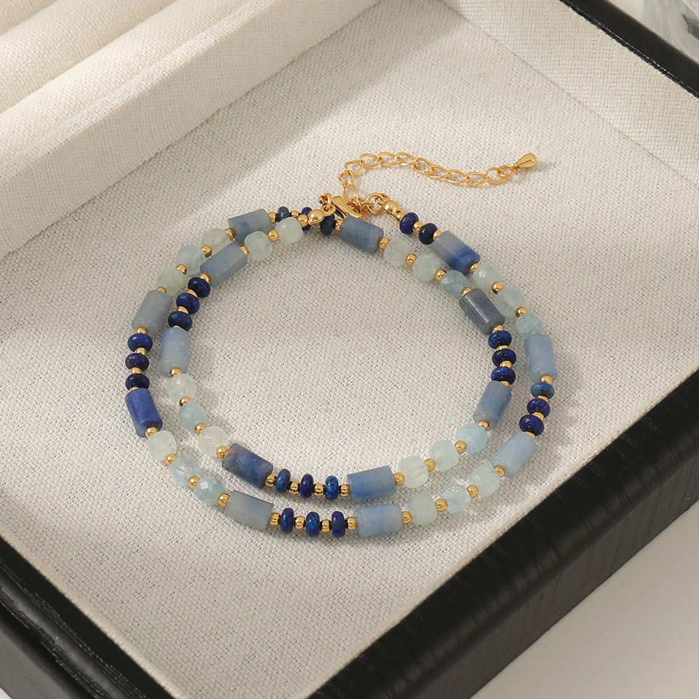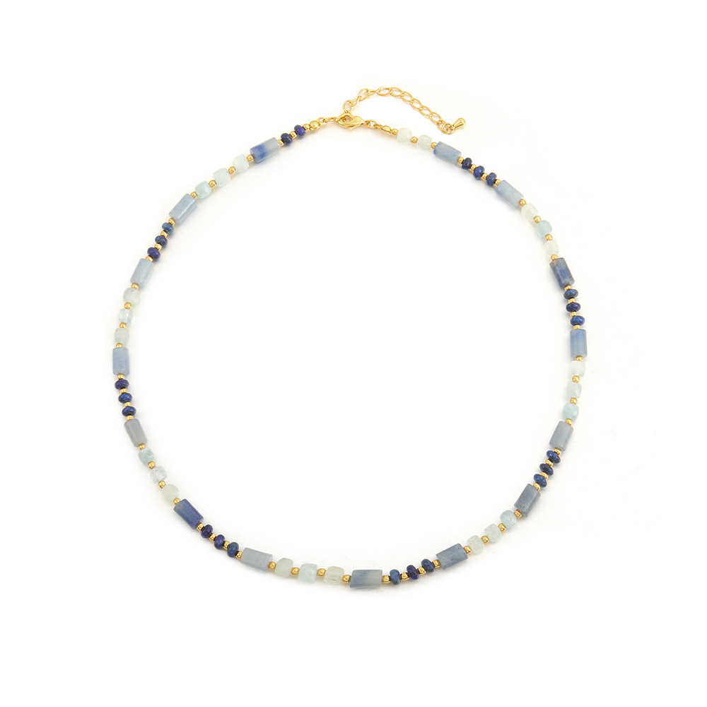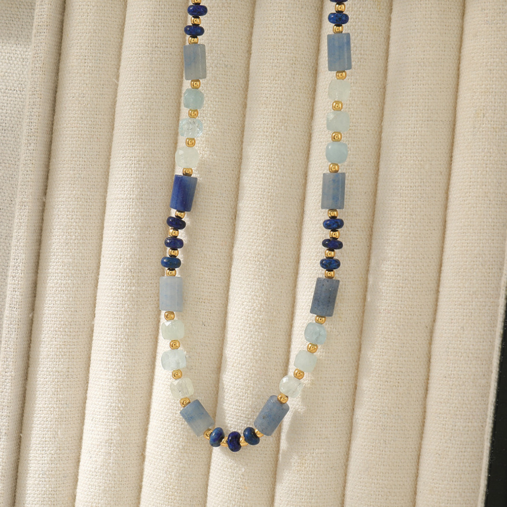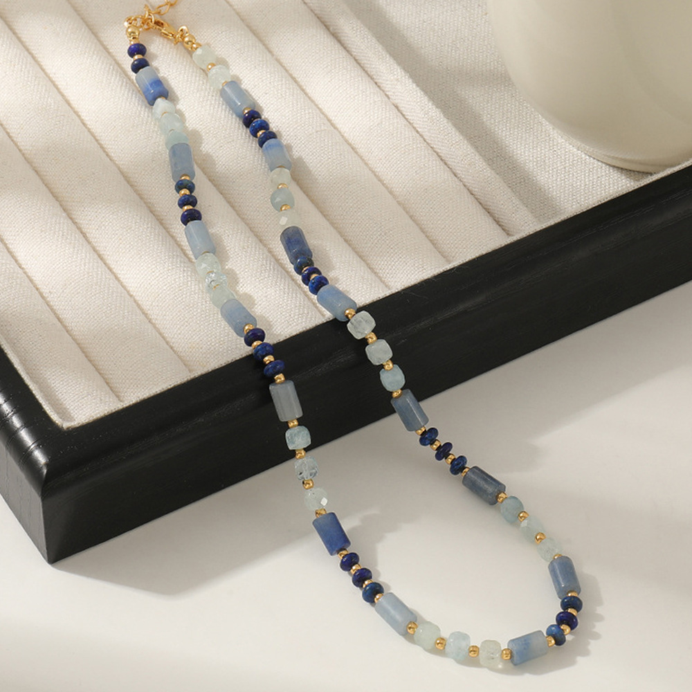 英国Cherry Kitty新款浅蓝色海蓝宝手工串珠项链原创设计小众
