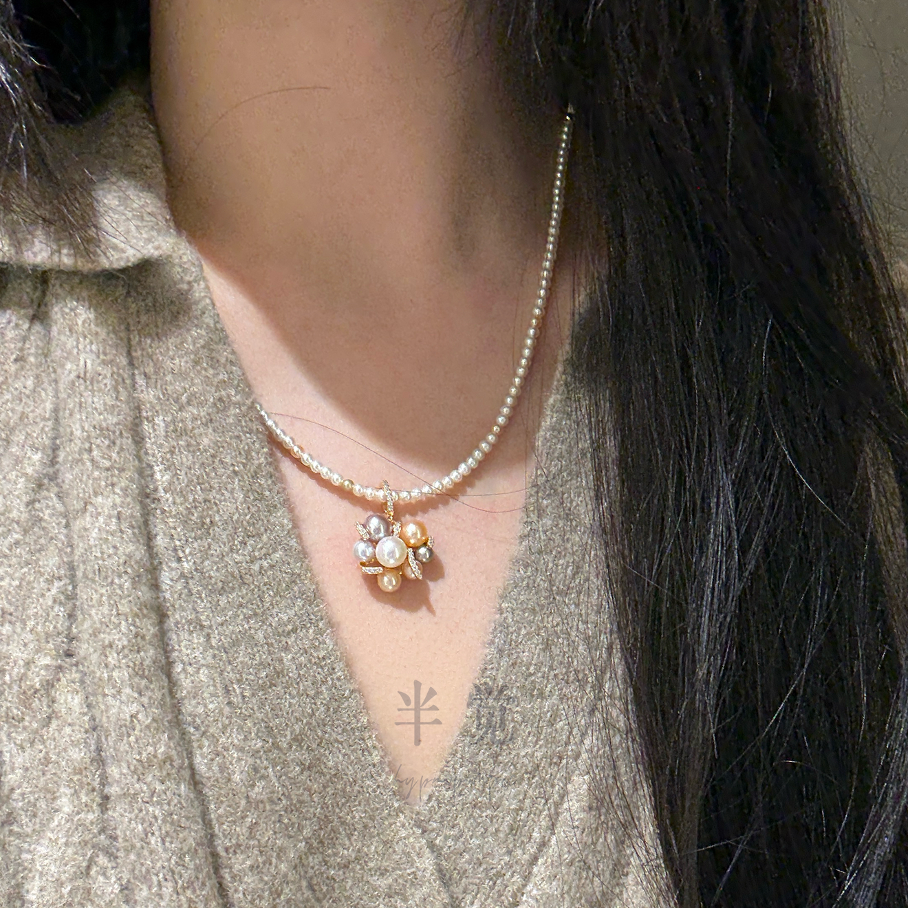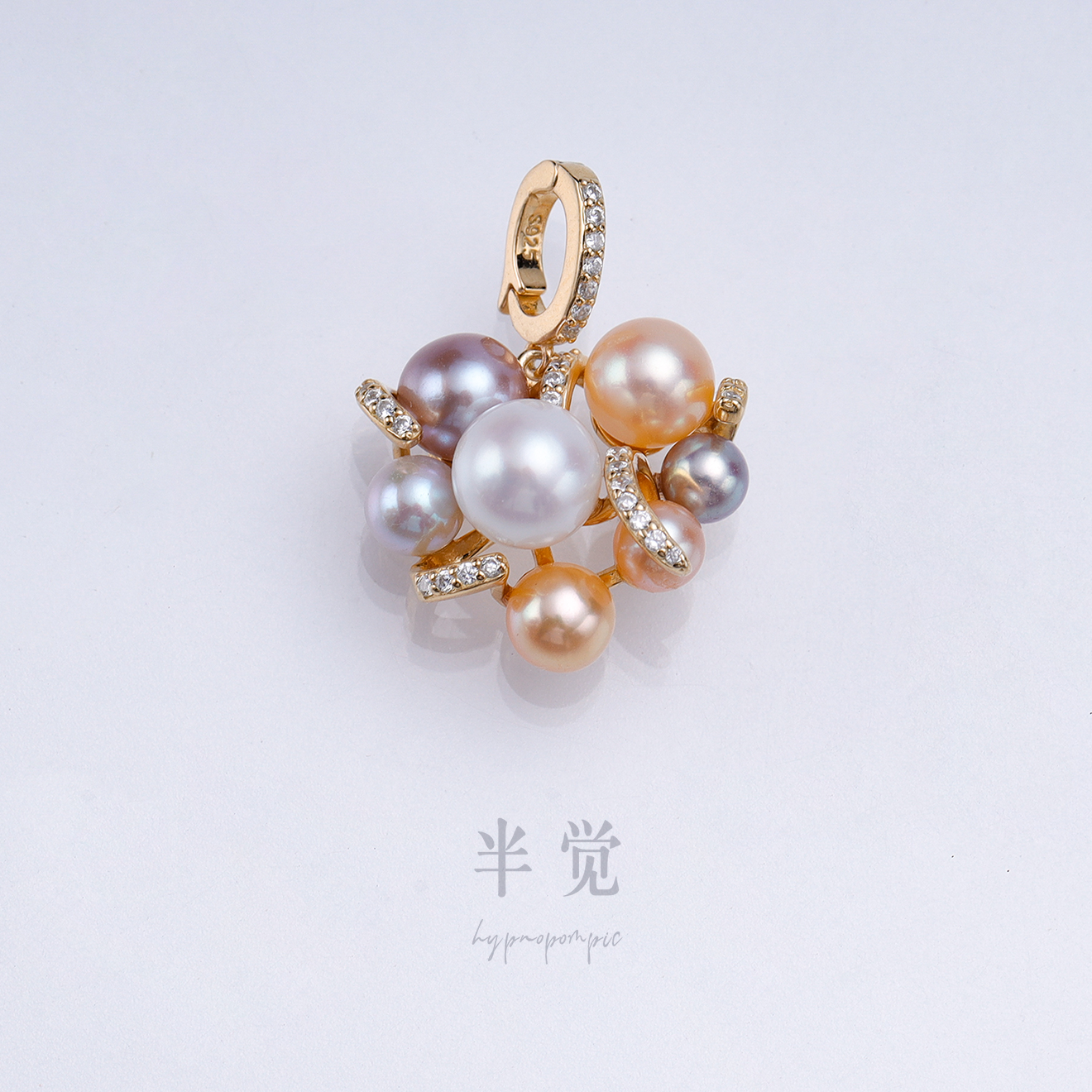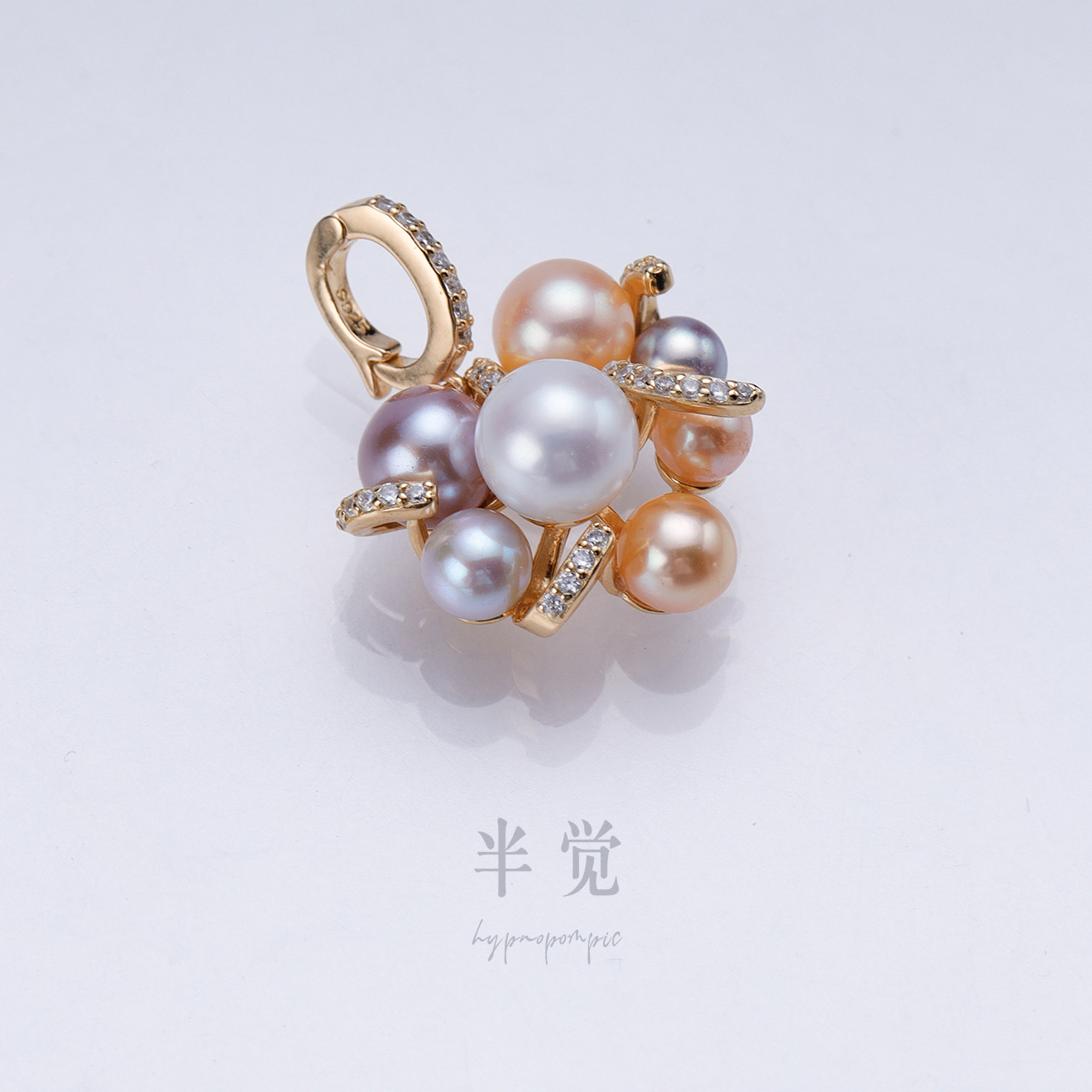 半觉繁花爱心吊坠极光特选正圆珍珠万能扣吊坠