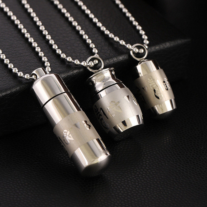 时尚钛钢空心可打开六字真言大明咒项链吊坠楞严咒挂件男女士饰品