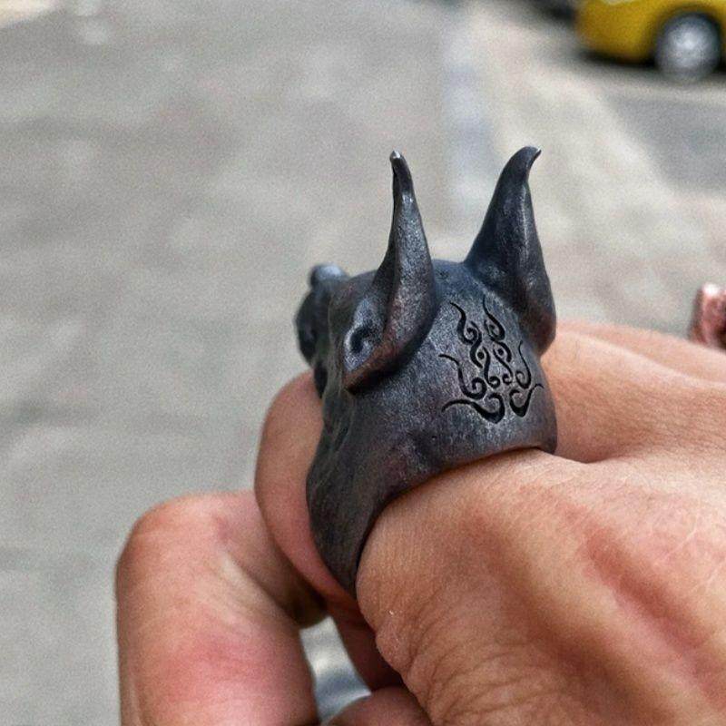 守护者地狱恶犬戒指个性狗狗指环原创手工小众创意趣味高级感独特