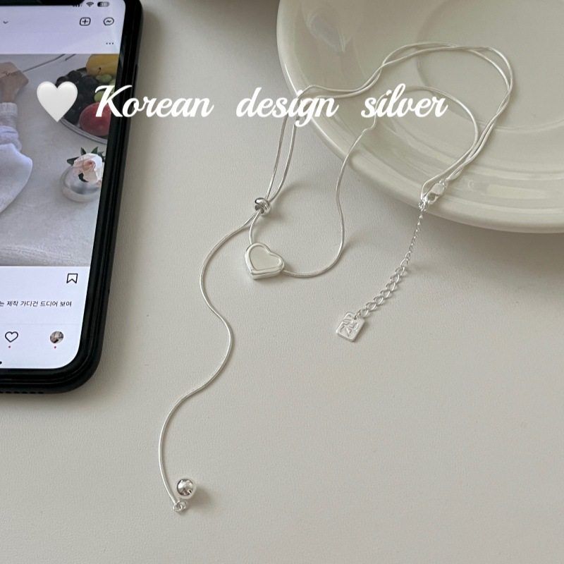 韩国小众设计亮银饰品 S925纯银贝母爱心抽拉项链高级感叠戴ins风