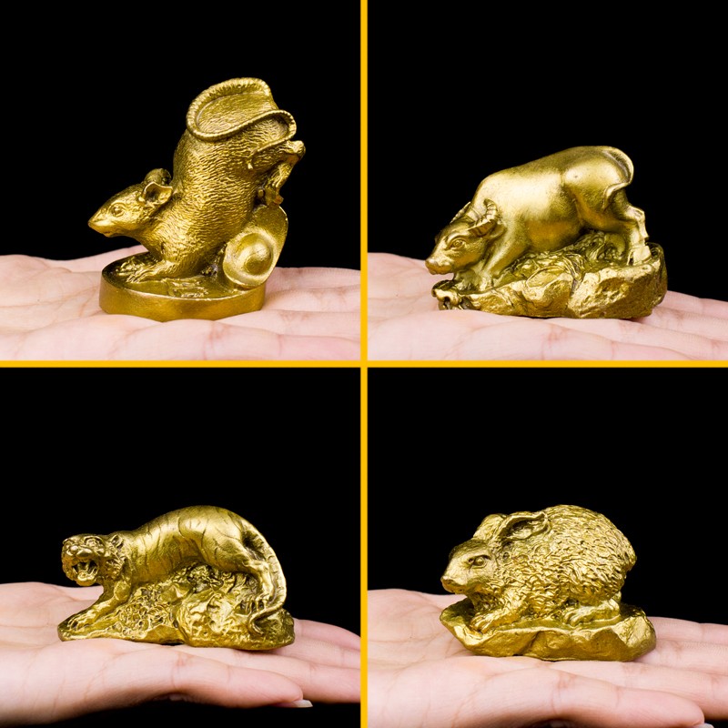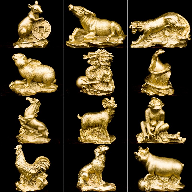 纯铜十二生肖摆件全套中式铜鼠牛虎兔龙蛇马羊猴鸡狗猪装饰品礼物