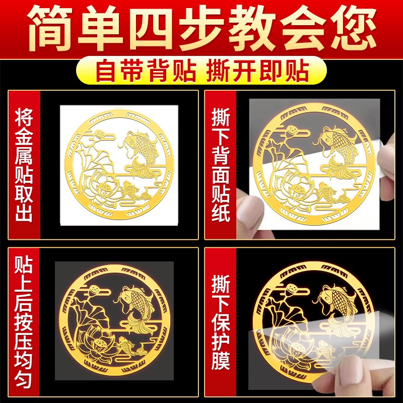 好运连连贴纸锦鲤莲花荷花净秽图鲤鱼金属贴画厨房卫生间厕所鞋柜
