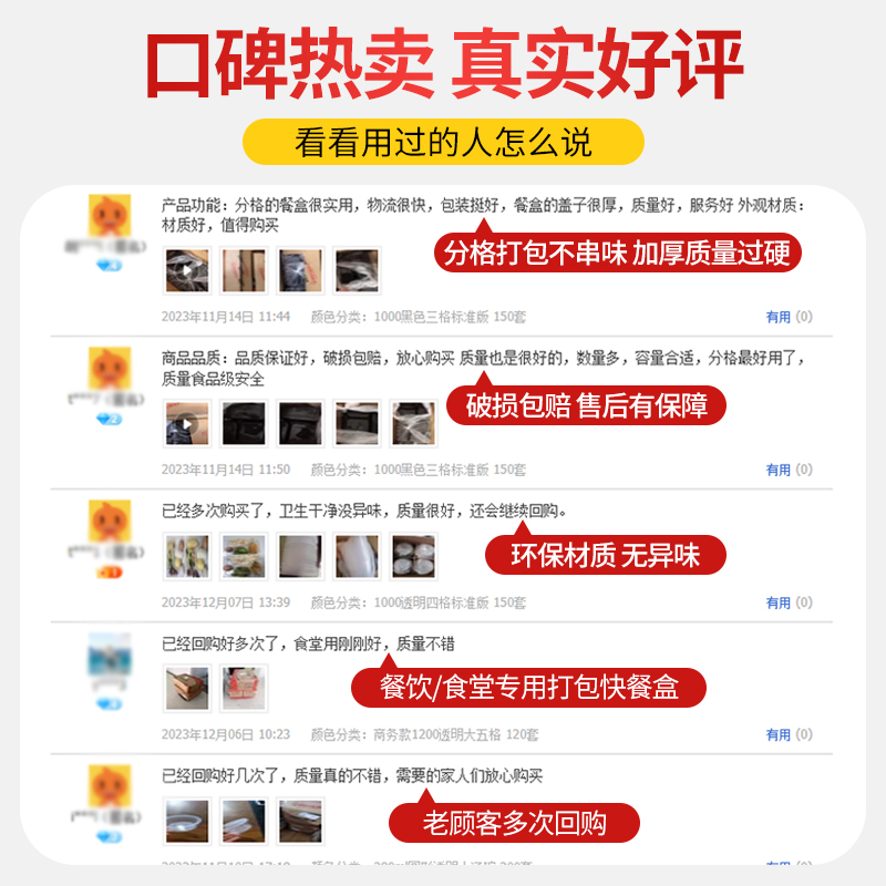 1000ml一次性餐盒四格外卖打包盒多格饭盒分格三格五格六格快餐盒