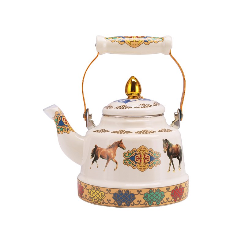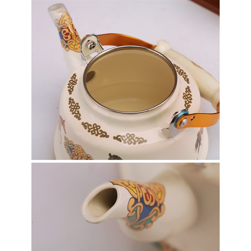 藏式马白马茶壶冲白色敬水壶餐具酥油茶具西藏民族特Y色搪瓷多升