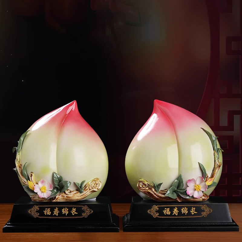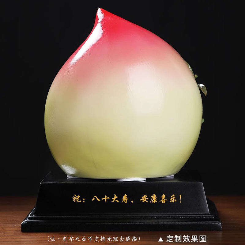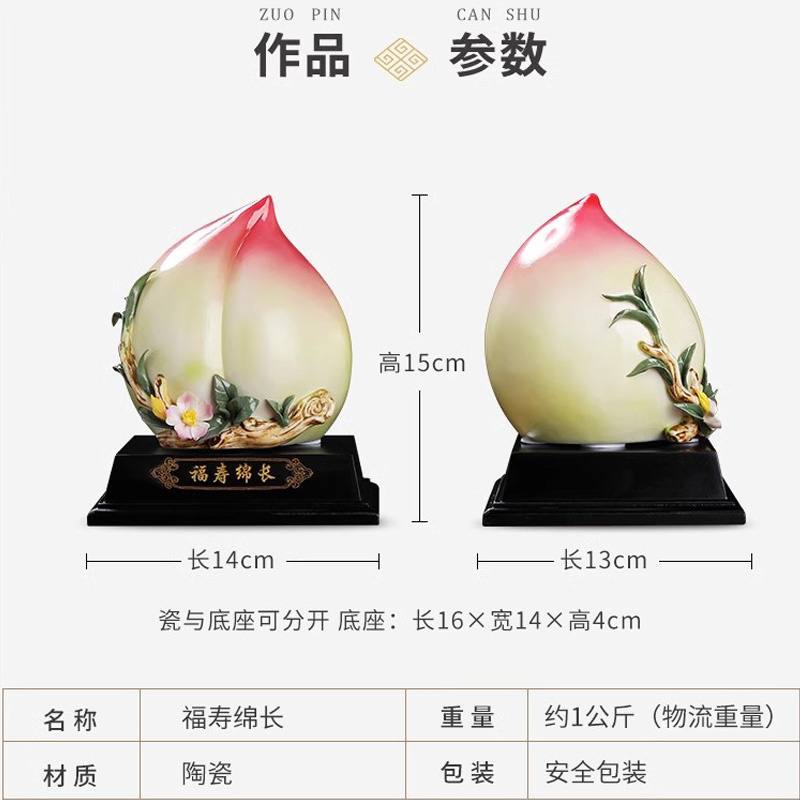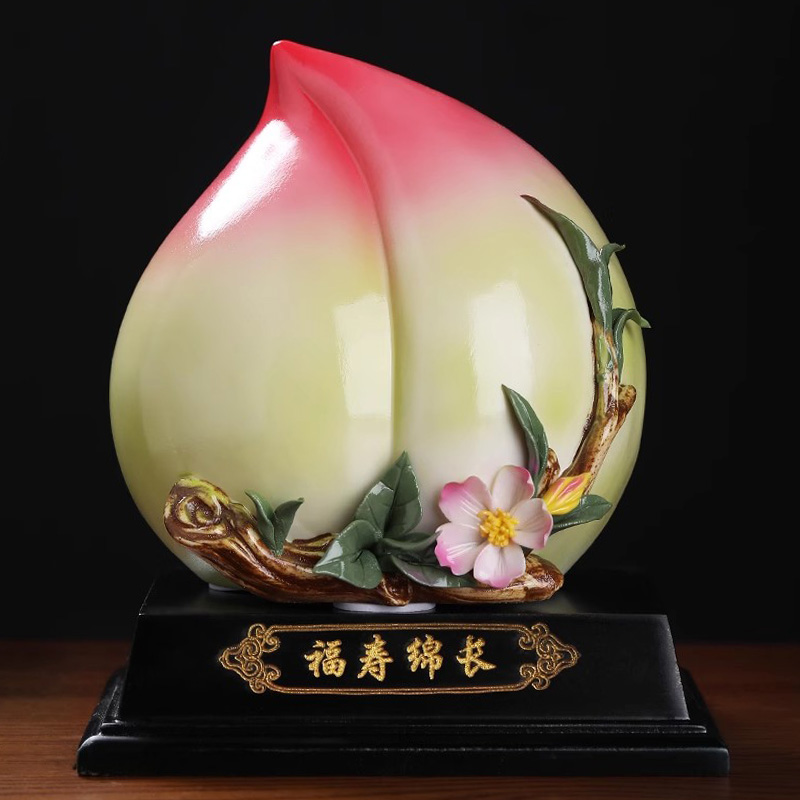 彩釉陶瓷寿桃工艺品摆件中式寿桃蟠桃客厅家居装饰送长辈祝寿礼品