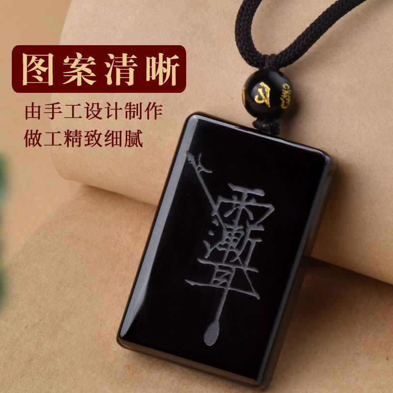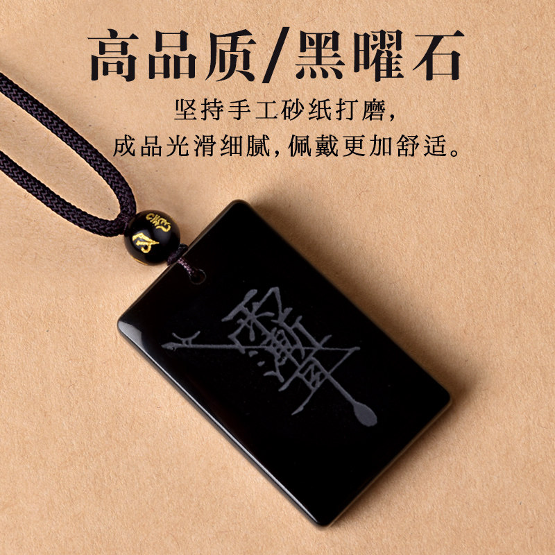 天然黑曜石紫薇讳吊坠令牌项链男护身符报平安挂件无事牌吊坠女