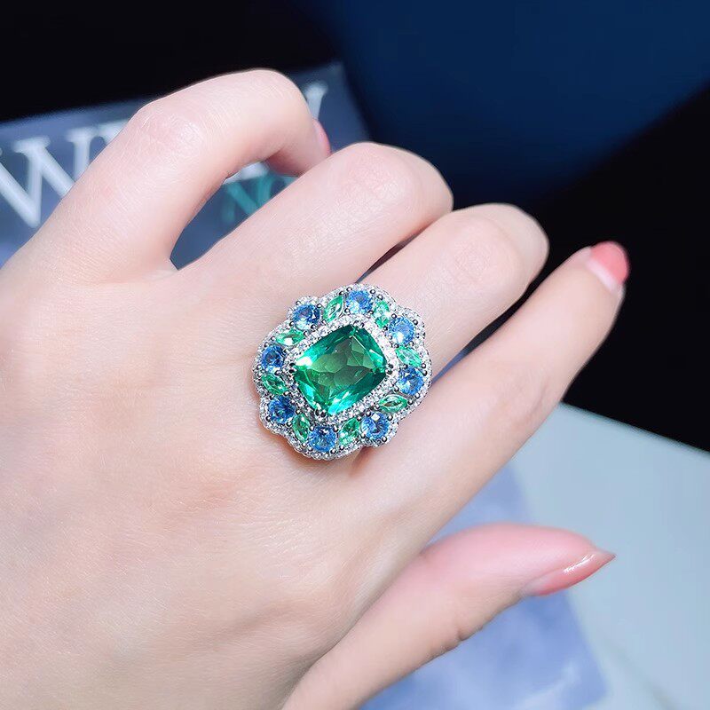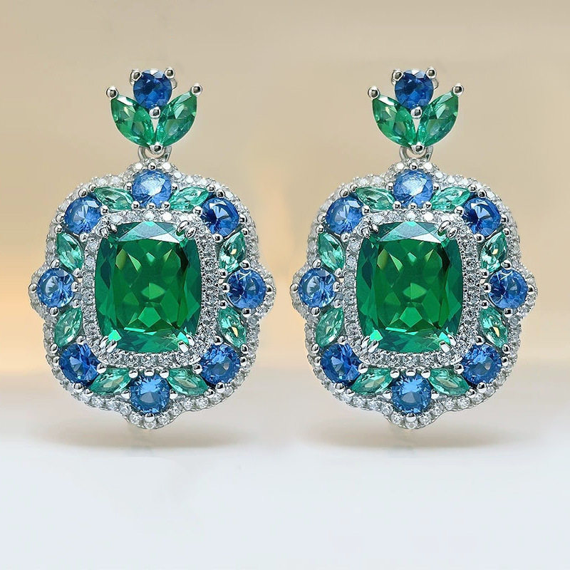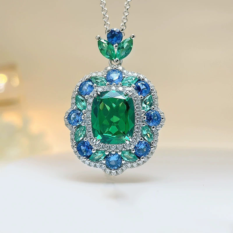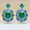 欧美仿真复古彩宝吊坠项链彩宝耳环套装首饰祖母绿女耳钉锆石戒指